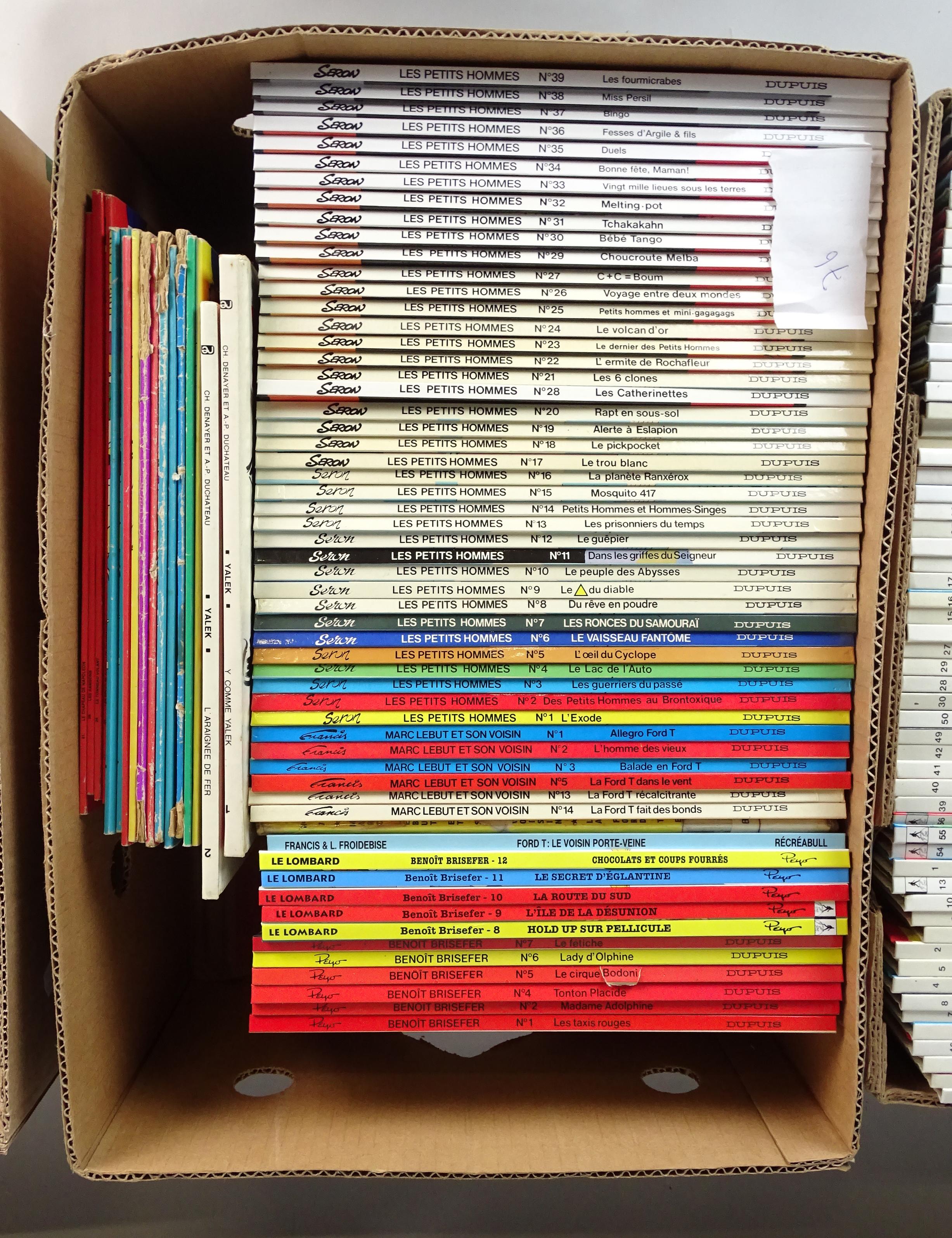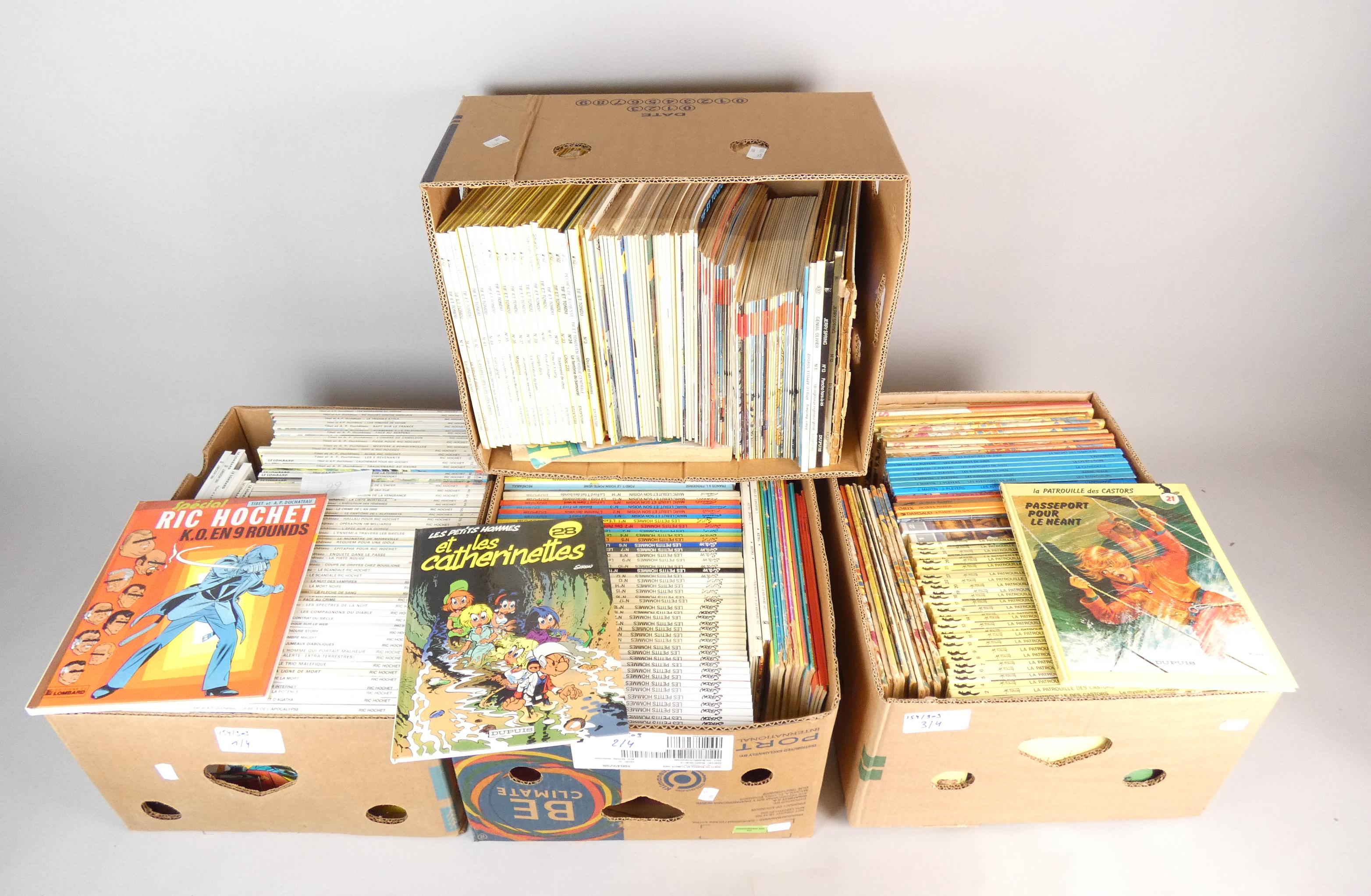 BD(305): Lot de bandes dessinées(Bon état) dont Ric Hochet, Patrouille des castors, Marc Lebut, Samedi Jeunesse, Benoit Brisefer, Tif et Tondu, Jhen,... (4 caisses)