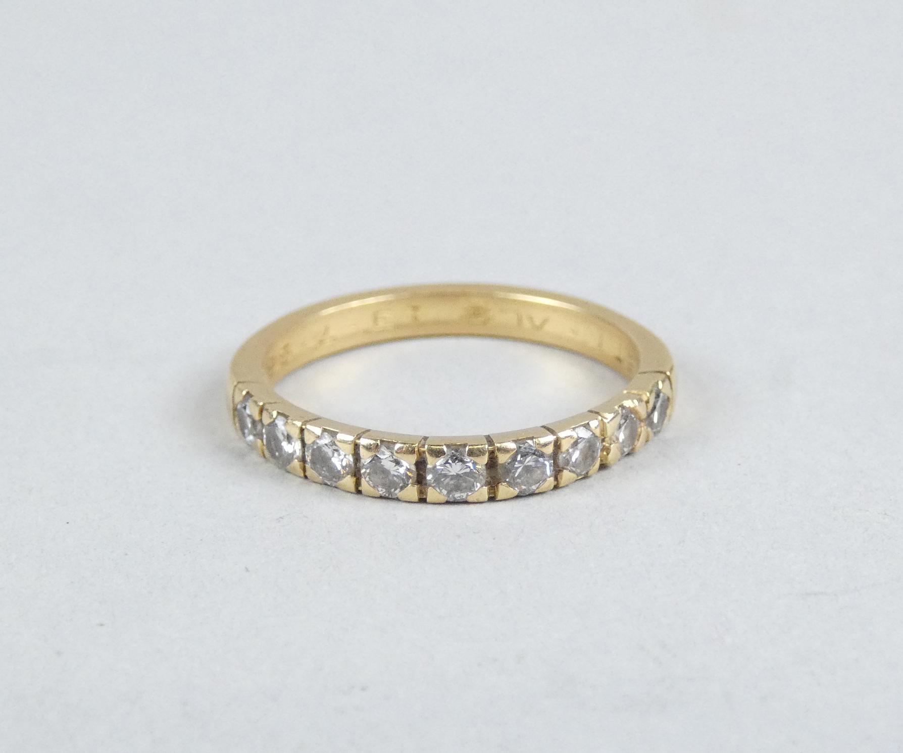 Bijou: Demi alliance américaine en or jaune 18K sertie de 9 diamants d'env. 0,02cts P: 2,6g TDD env 53