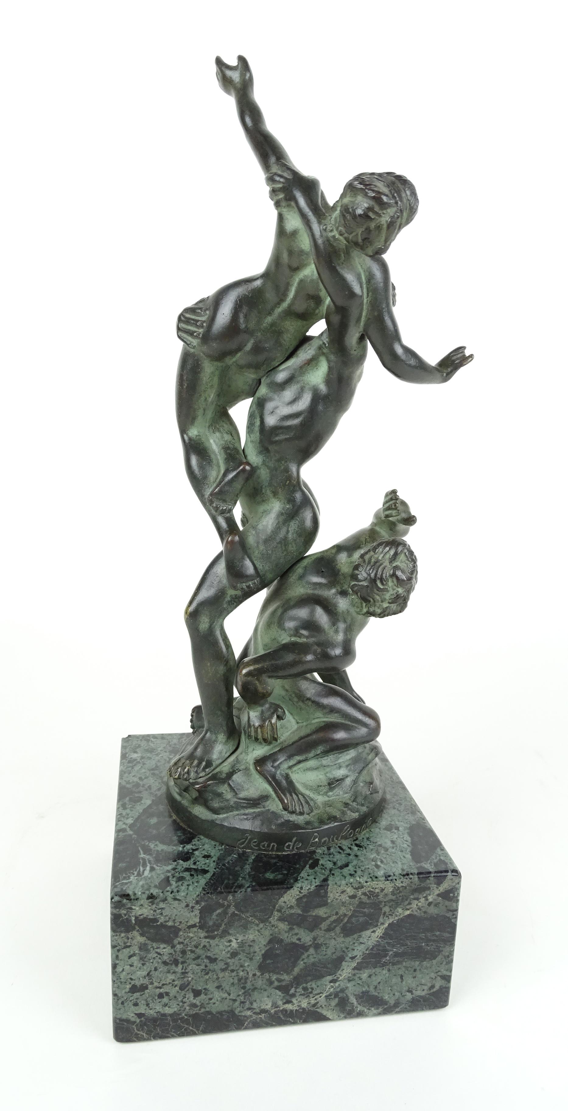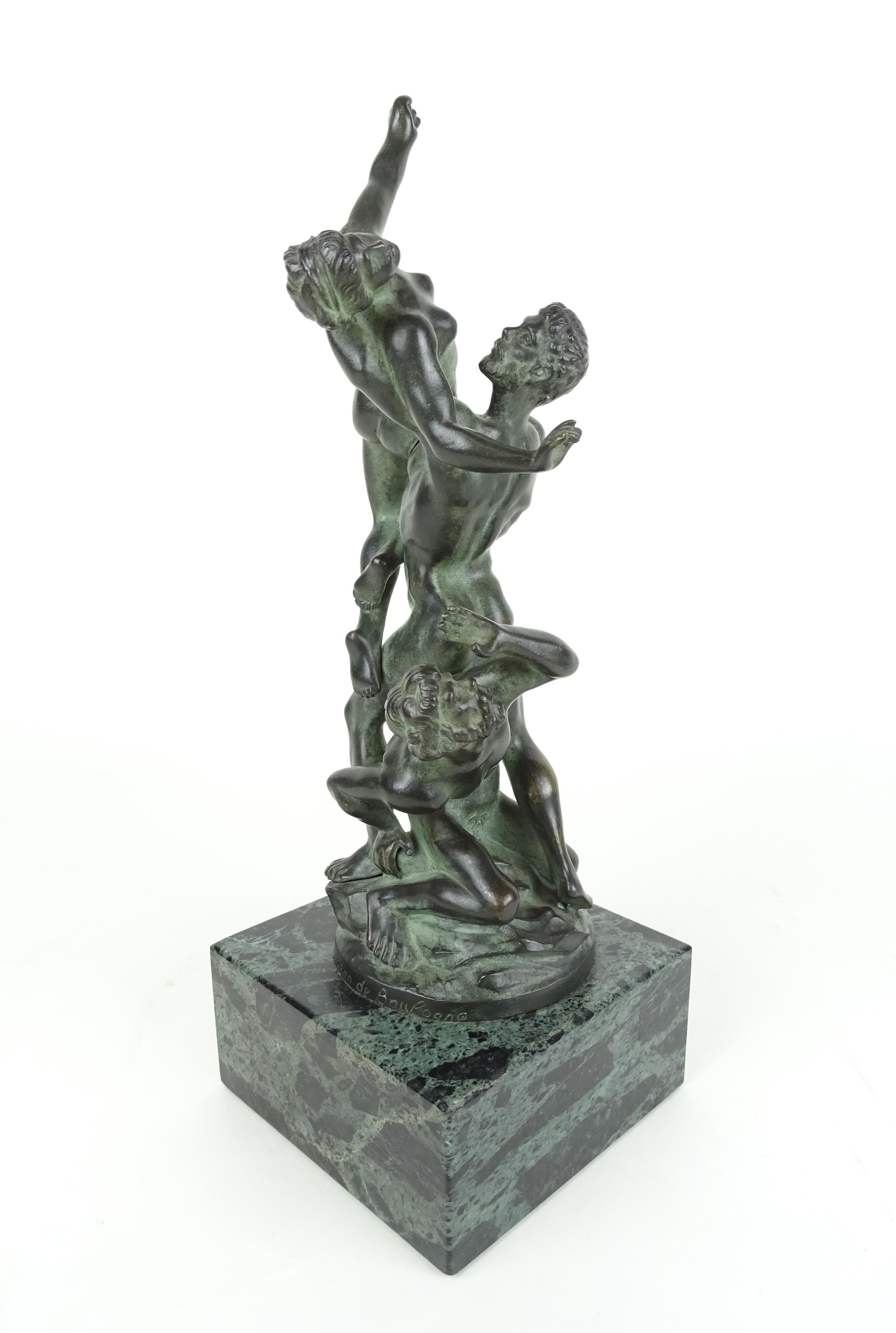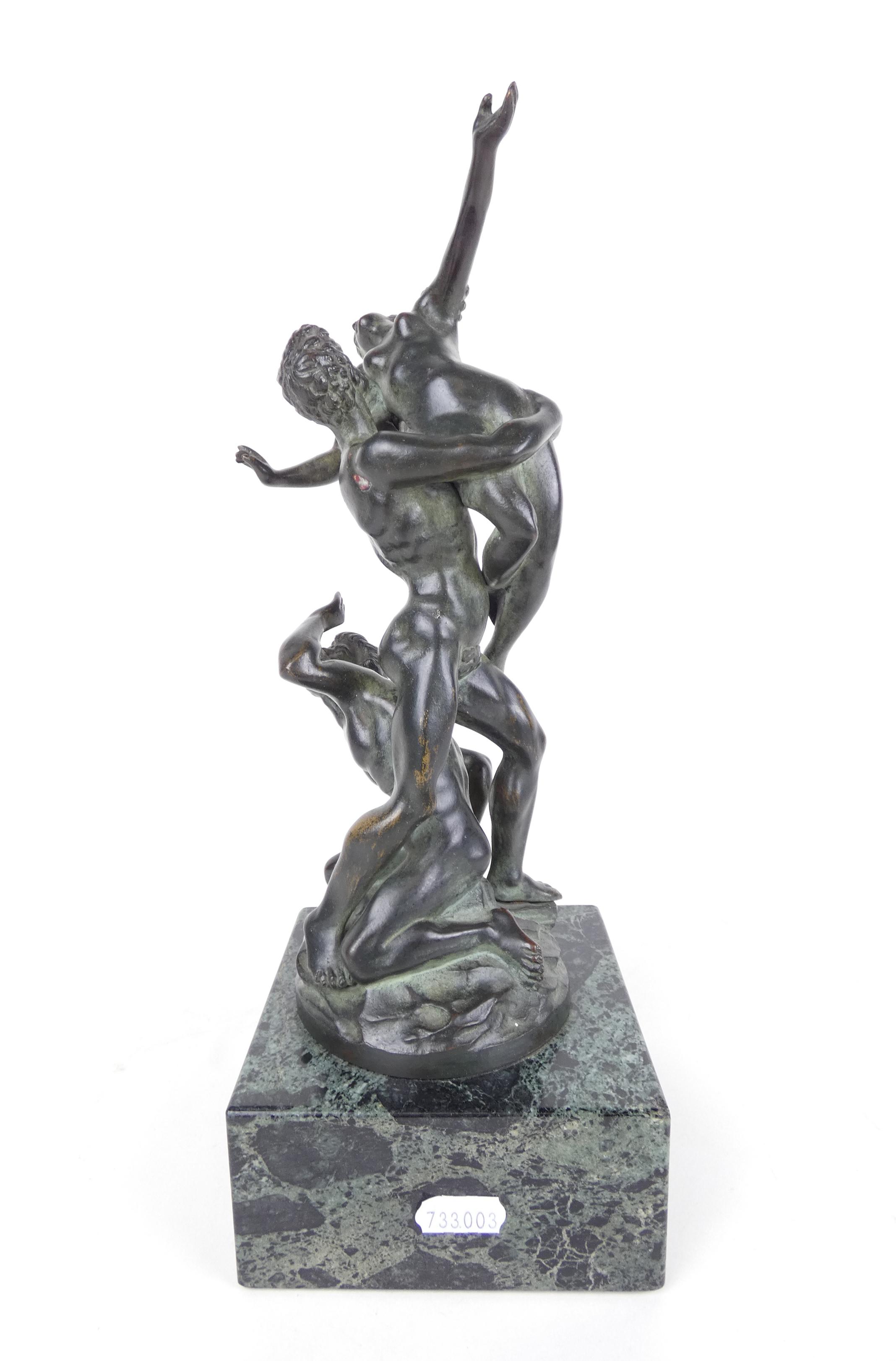 Sculpture: Bronze à patine verte -L'enlèvement des Sabines- signé d'après *DE BOLOGNE J.* (Jean) (1529, 1608) dit GIAMBOLOGNA H:28cm sur socle en marbre