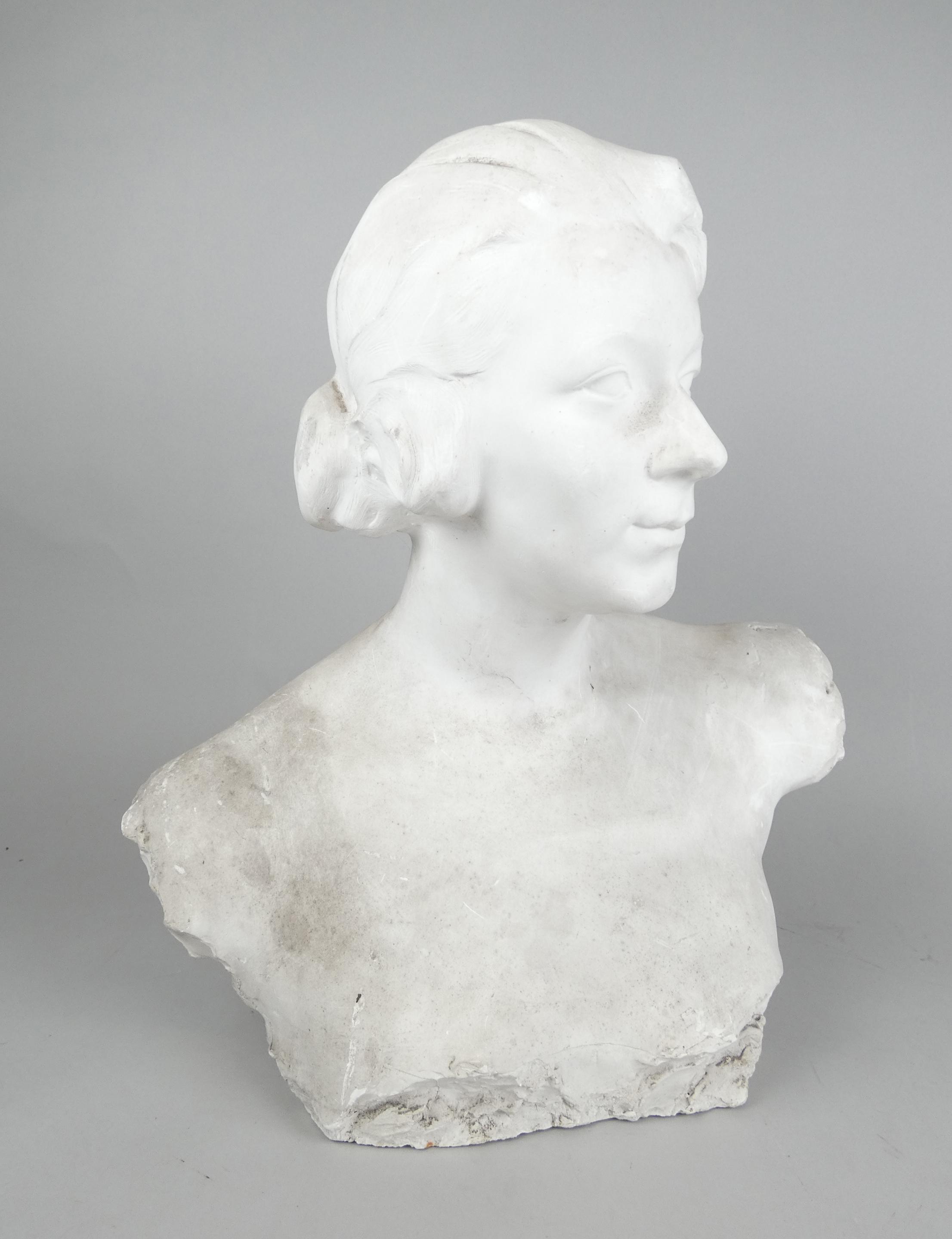 Sculpture: Buste de femme en plâtre d'atelier (usure, ecl) signé *COLLET M.* (Marcel) (1894, 1944) H:52,5cm