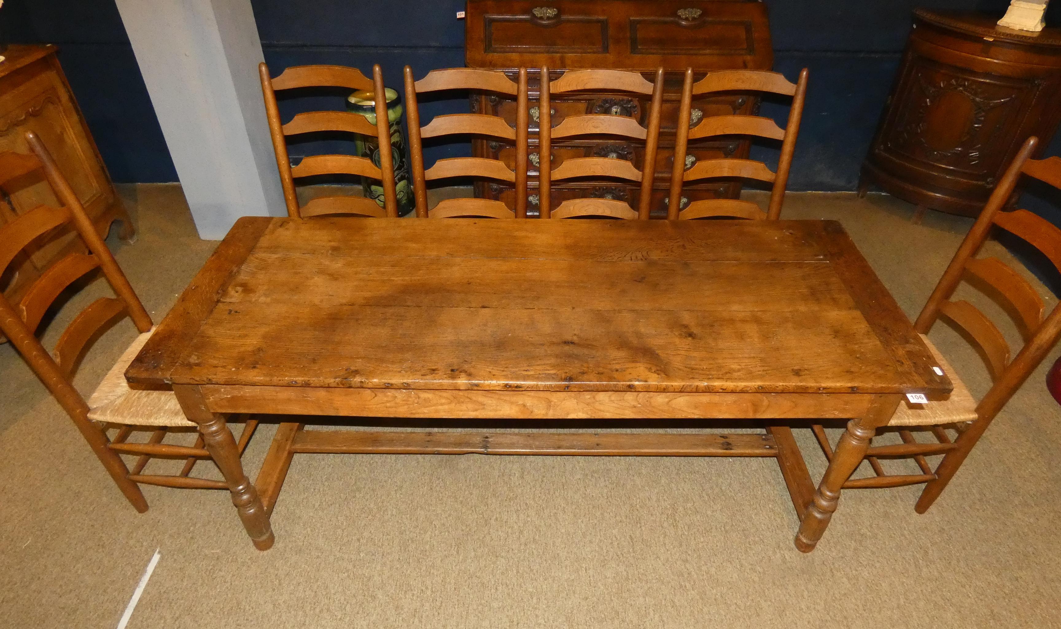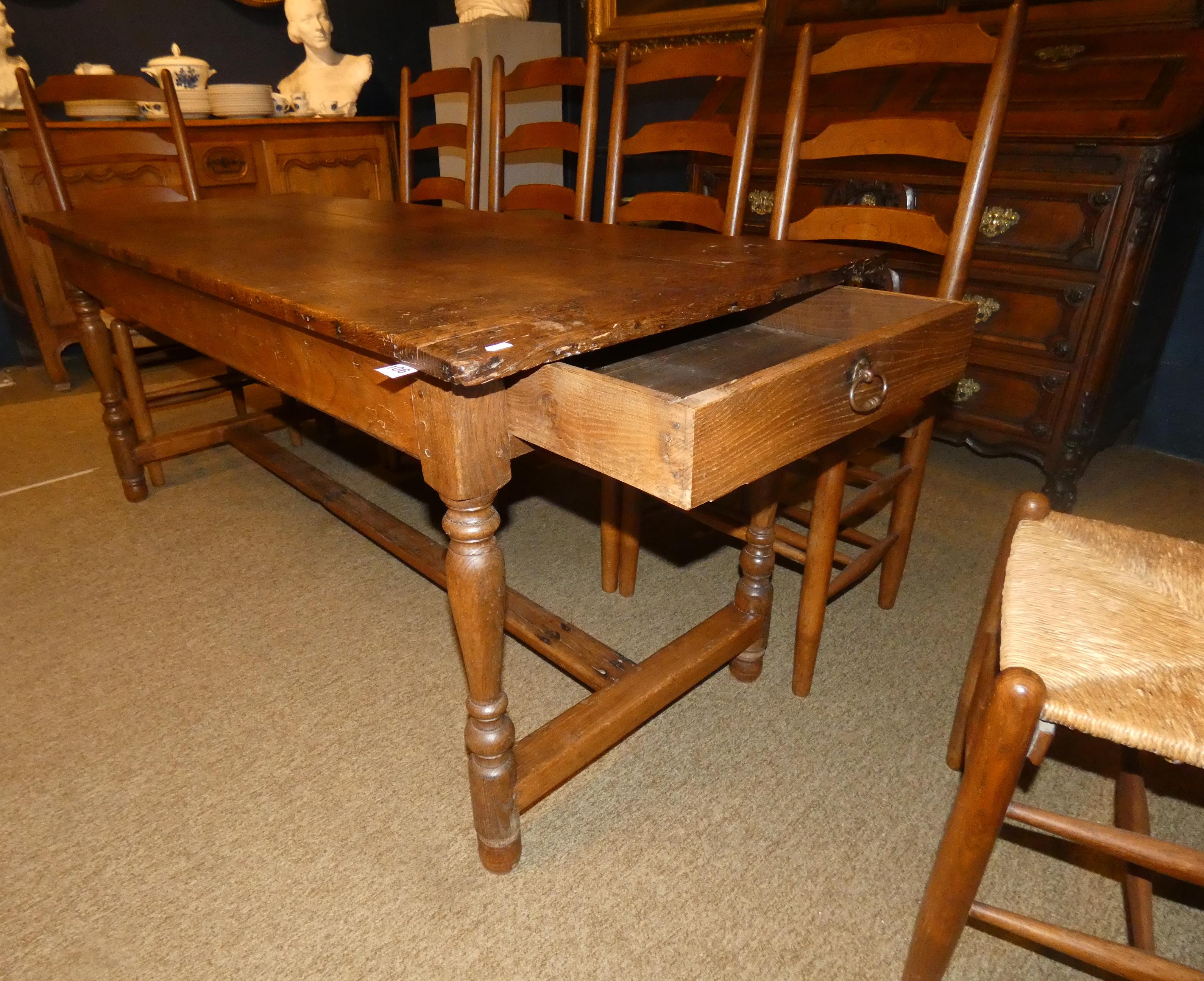 Meuble: Table de ferme en chêne 75x182x72cm + 6 chaises