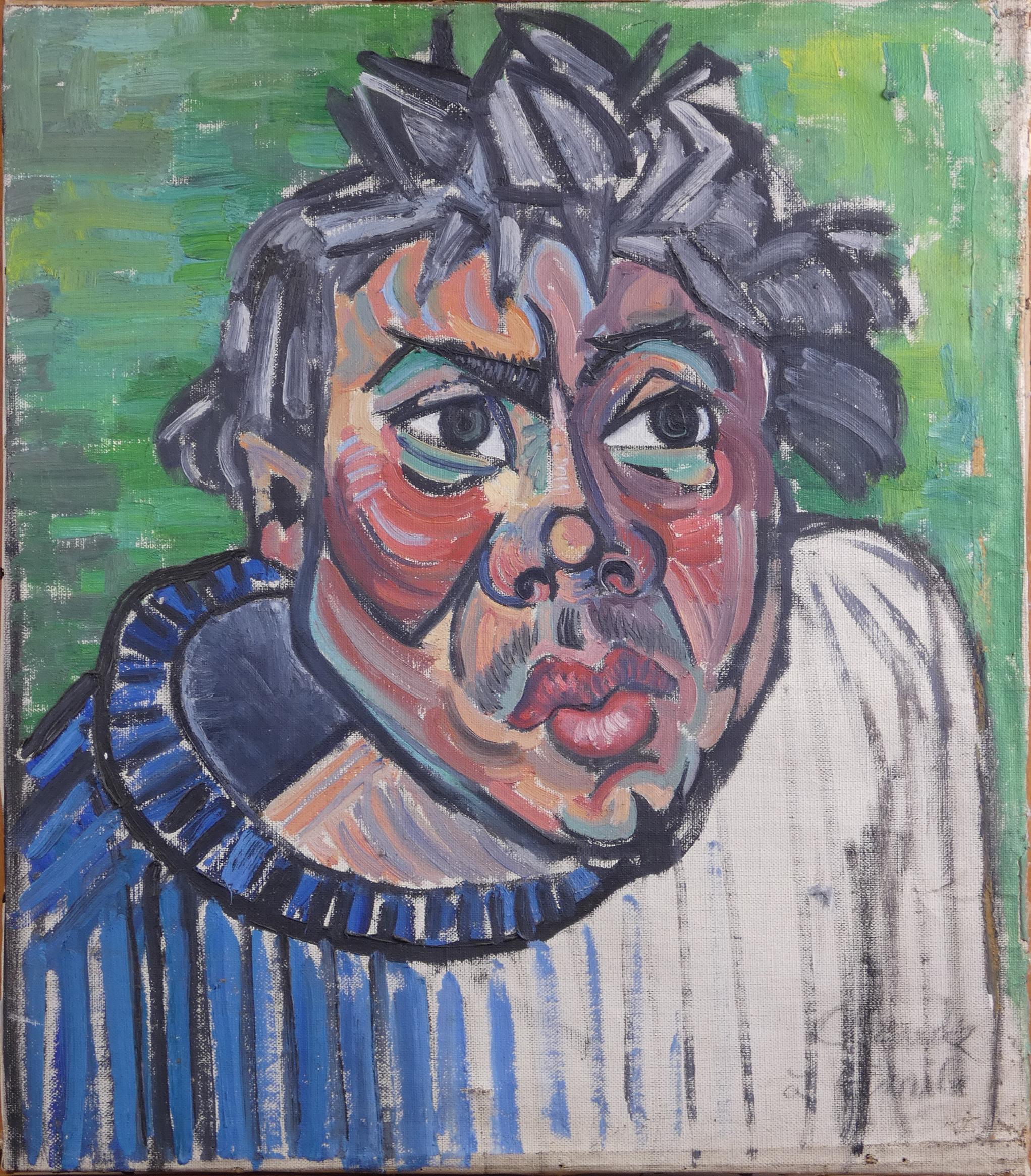 Tableau HST (pt trou, usure) -Portrait de Emile HECQ- signé *BERNARD C.* (Claude) (1924, 2020) (ami de Emile Hecq) 49,5x43,5cm sans cadre
