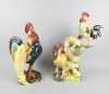 Céramique: Vallauris: Coq&épis de maïs (pt ecl, egr) signé *MASSIER J.* (Jean) (1877, 1937) H:38cm +Coq,... (egr) cachet *MASSIER J.* (Jérôme) (1850, 1926) H:45cm