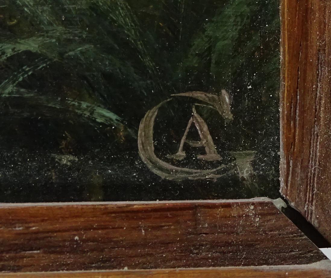 Tableau HSB - Barque sous un saule au bord de la Suippe effet de soleil - monogramé *GUERY A.* (Armand) (1850 - 1912) 22x35 cadre bois