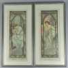 Estampe : chromo/offset (4pcs) - Les heures du jour - daté et signé dans la planche 99 d'après MUCHA Alphonse