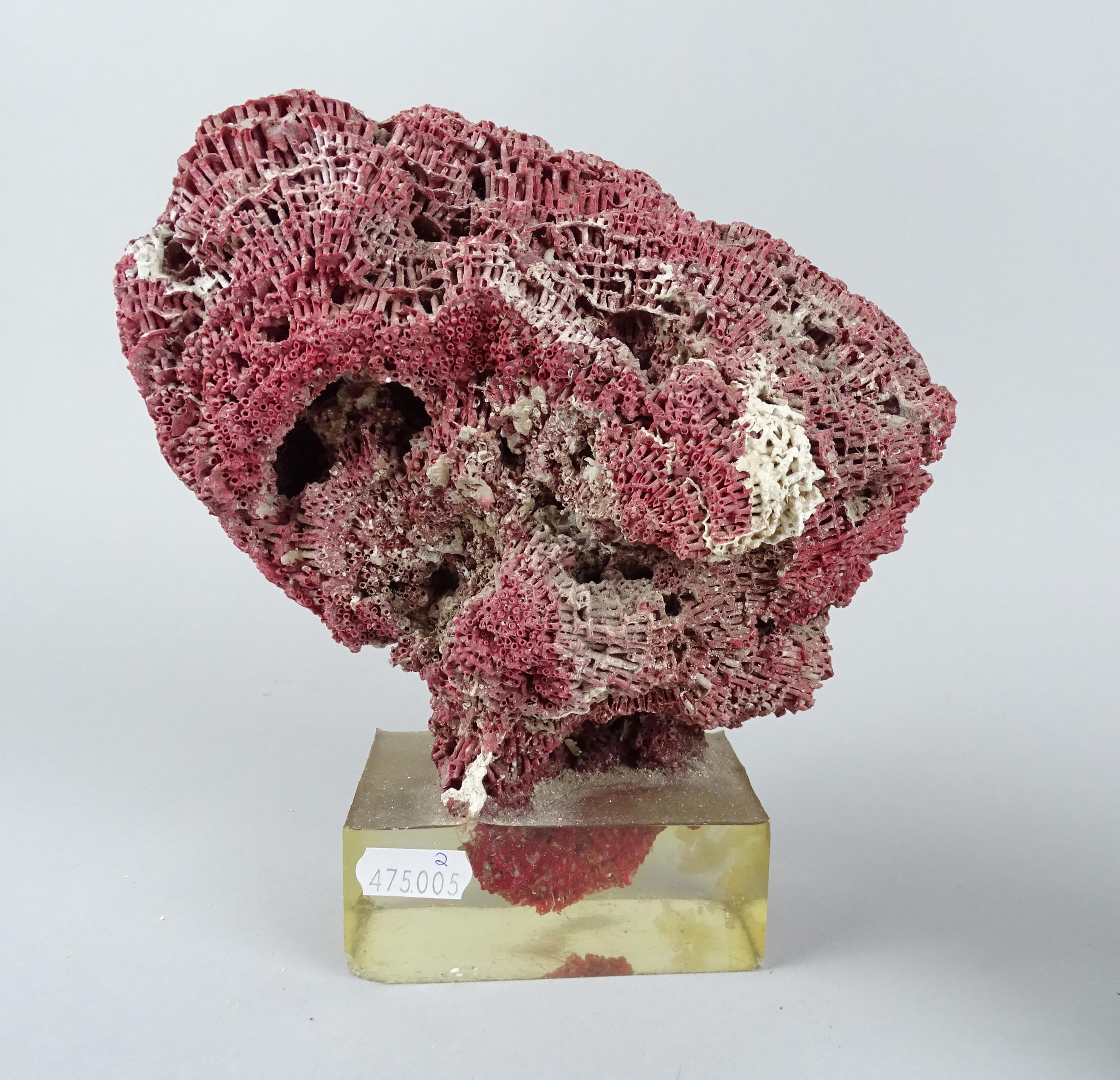 Collection minéraux EU ONLY : Bloc de malachite brut + Corail rouge avec socle en résine