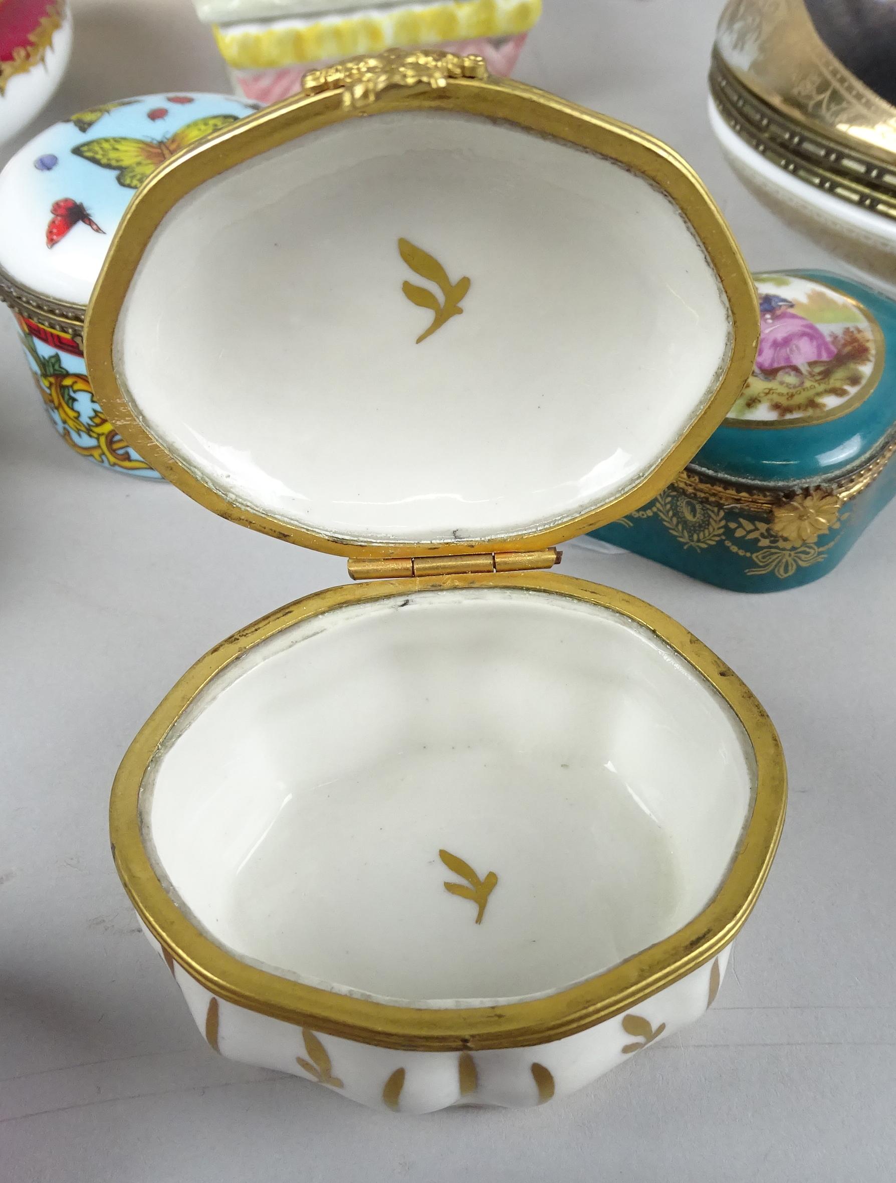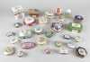 Céramique: Collection de boites / coffrets en porcelaine dont à pillules, décors peints, scène érotique, divers marquages, 1 en faience (cheveux) (28pcs)