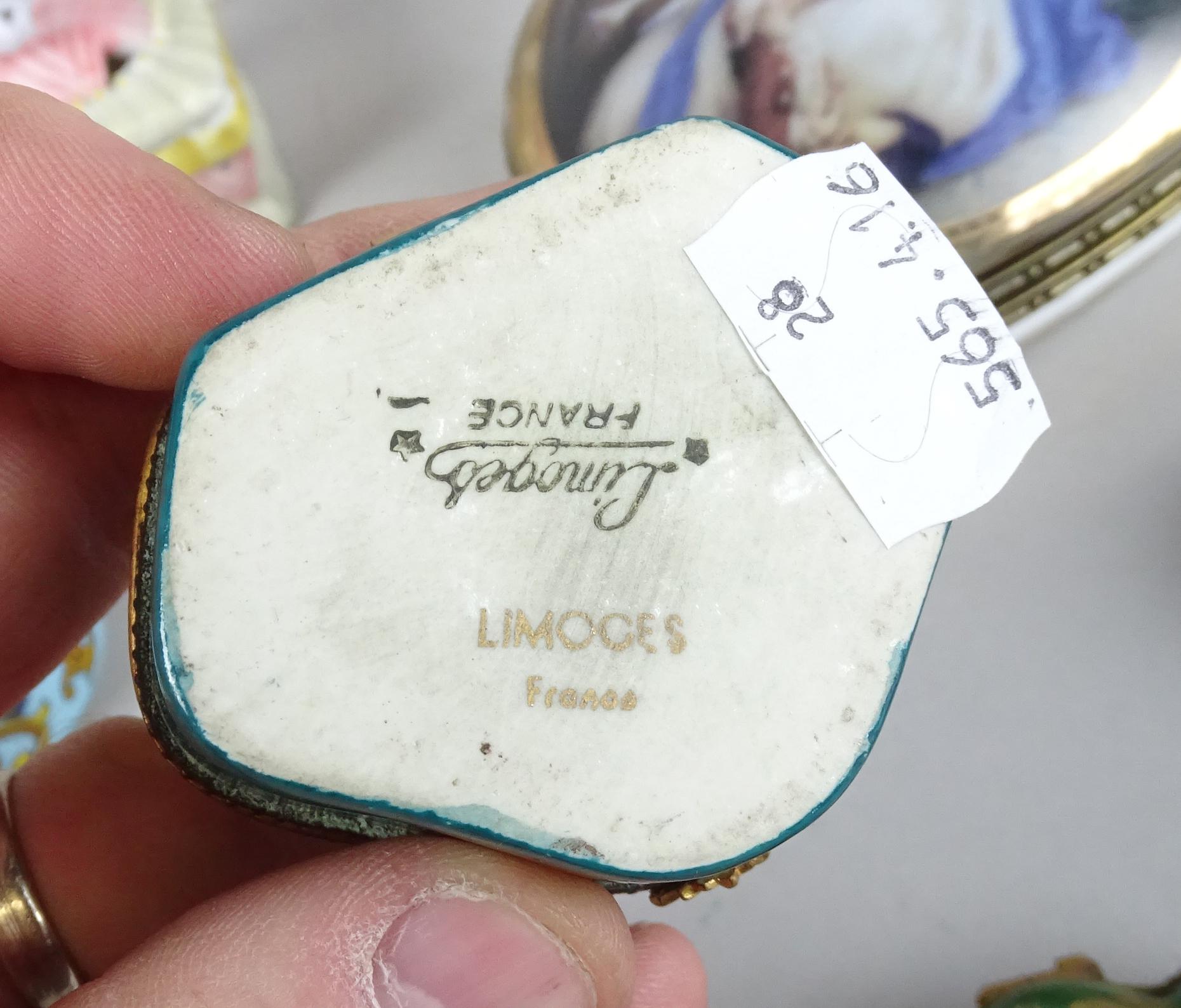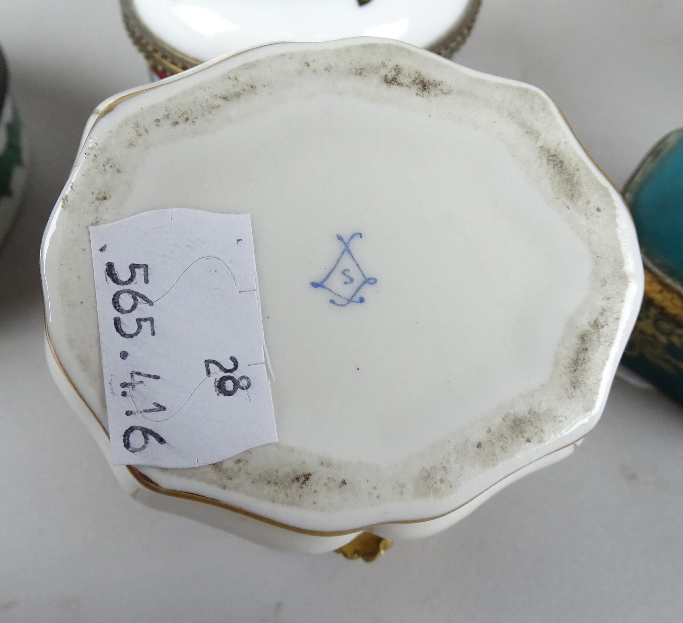 Céramique : Collection de boites / coffrets en porcelaine dont à pillules , décors peints , scène érotique , divers marquages , 1 en faience (cheveux)