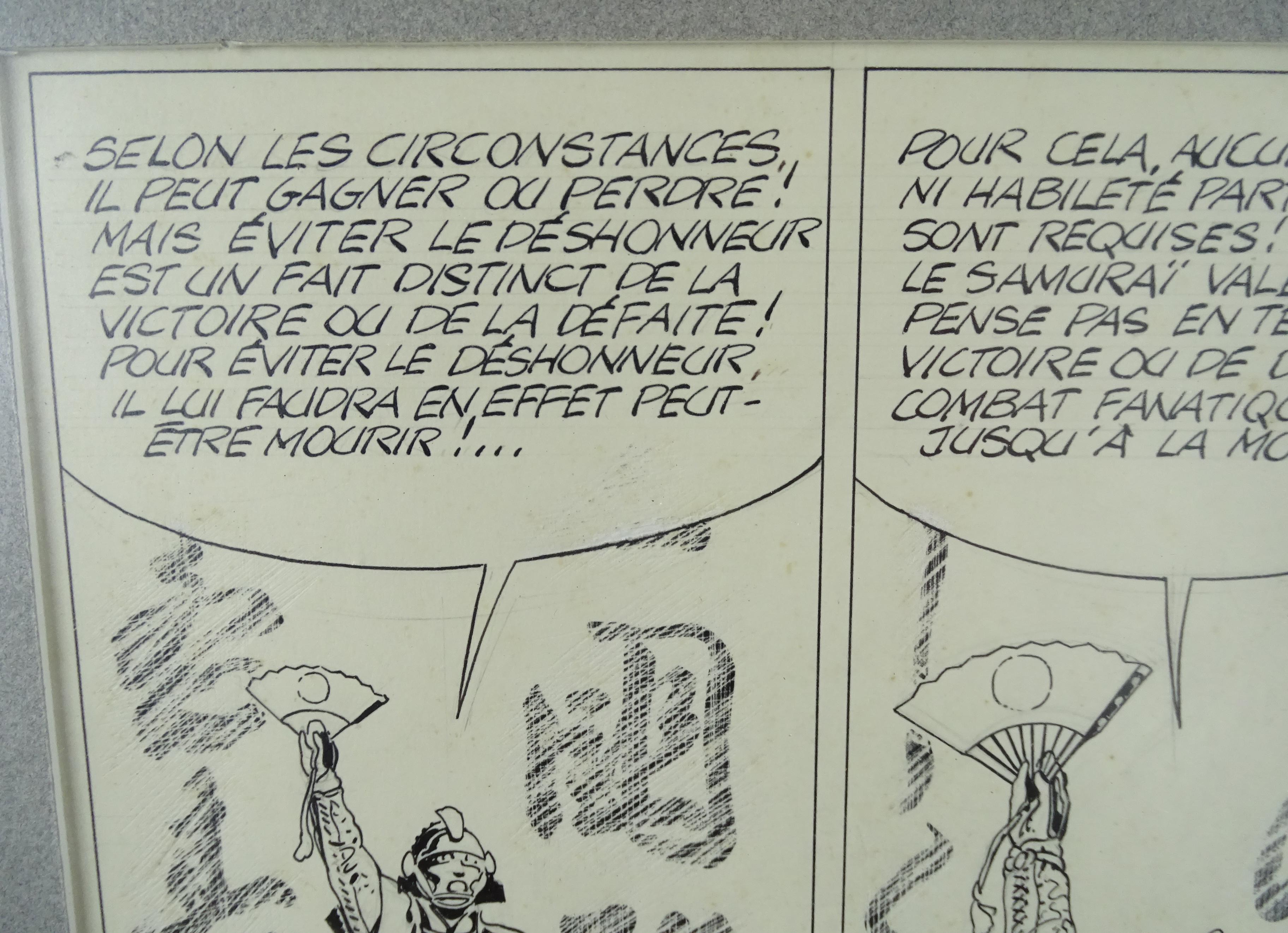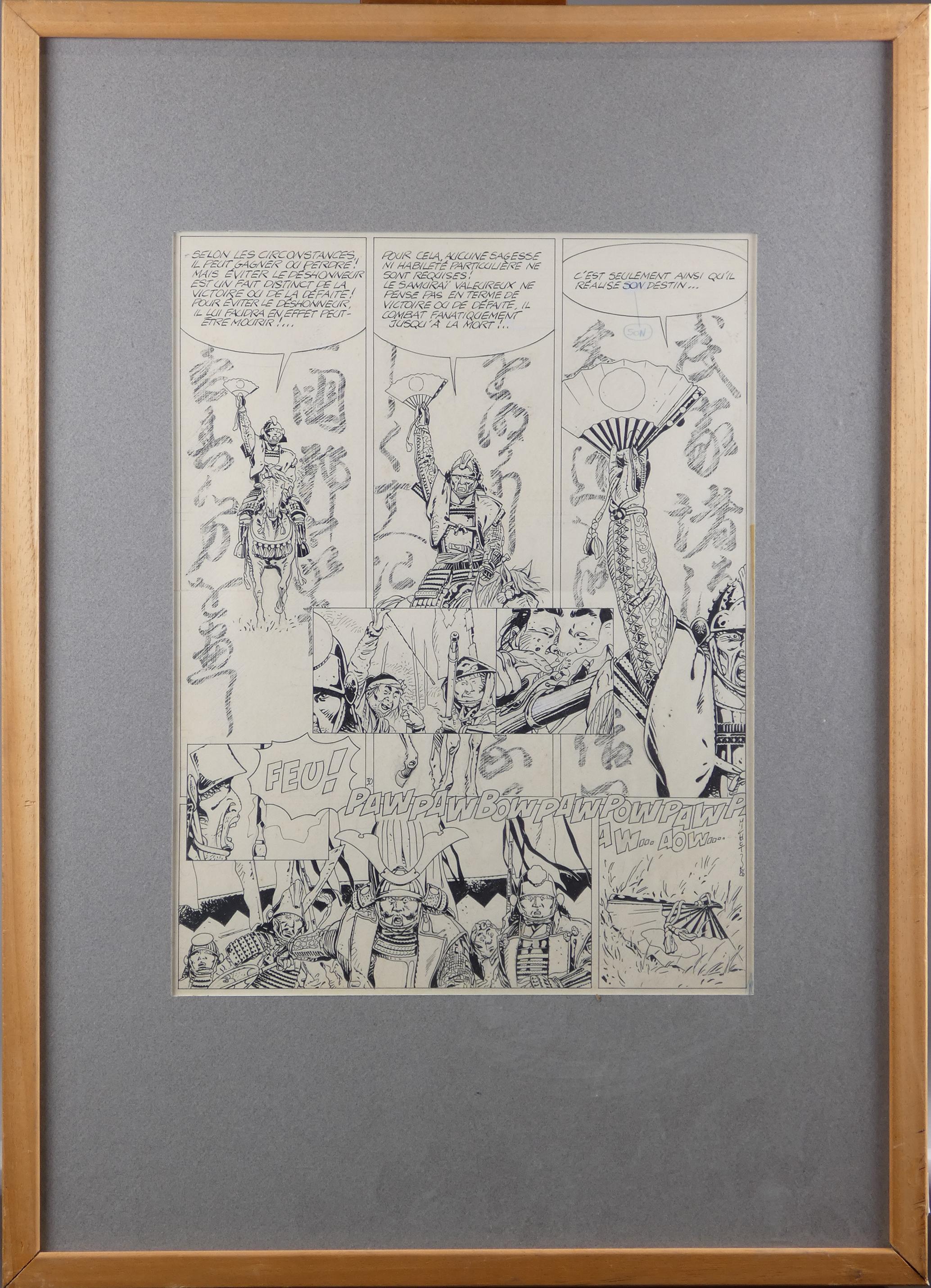 BD : Encre rehauts de gouache planche N°30 Kogaratsu - Le printemps écartelé - daté 86 signé MICHETZ pseudo de DE GROIDE Marc
