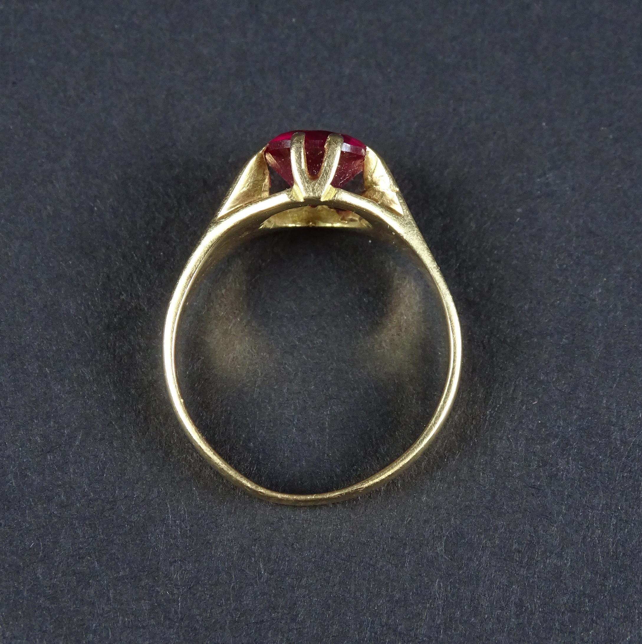 Bijou: Bague en or jaune 18K sertie d'un rubis probablement synthétique P: 4,7g TDD: 56