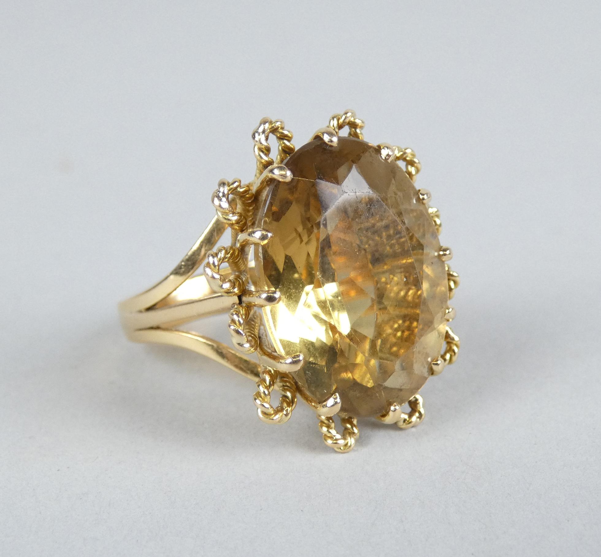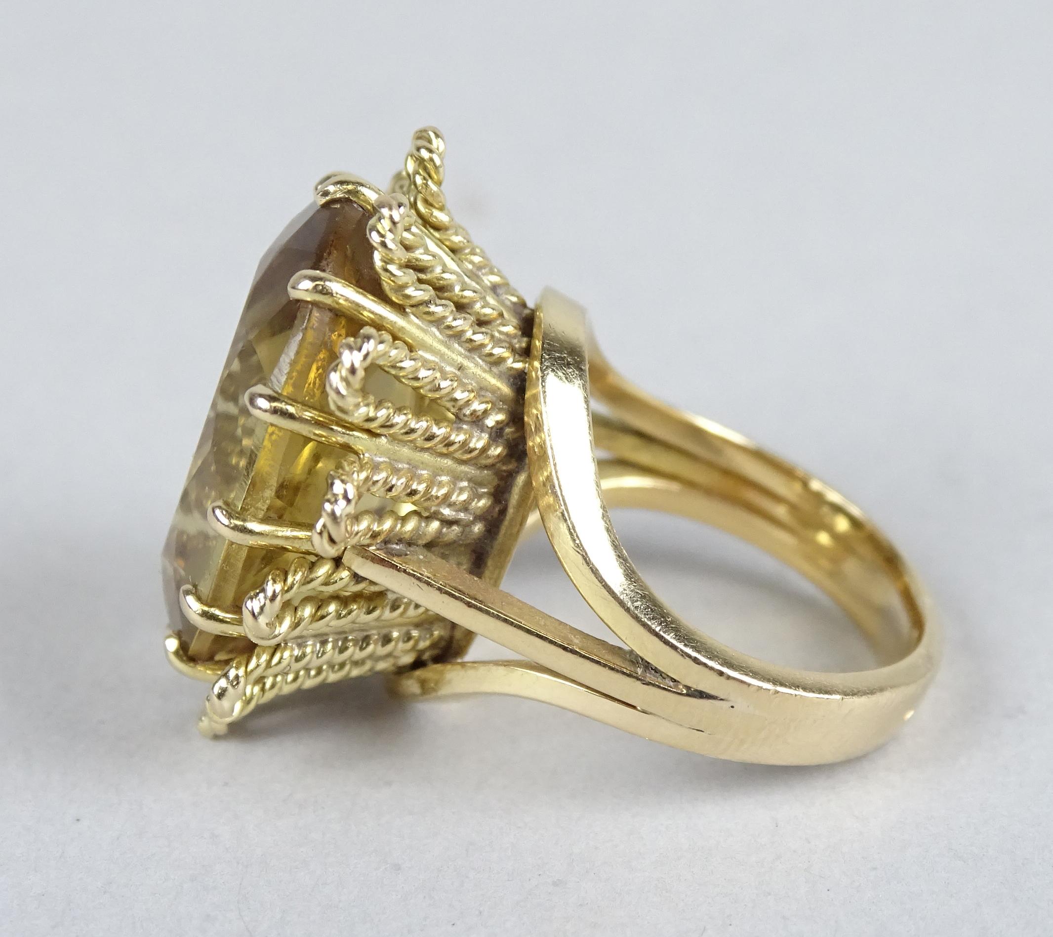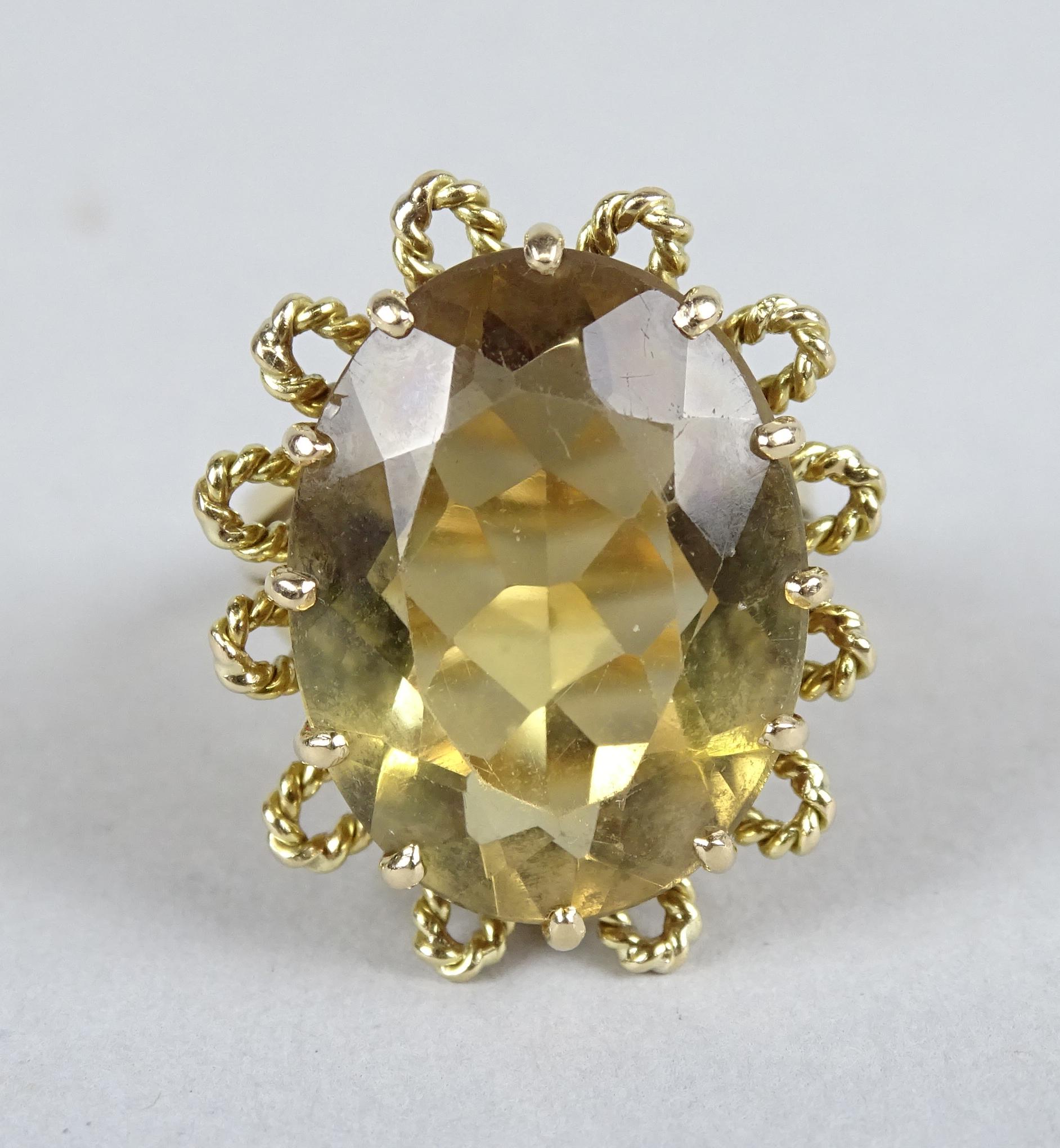 Bijou: Bague en or jaune 18K sertie d'une citrine P: 14,2g TDD env 51/52