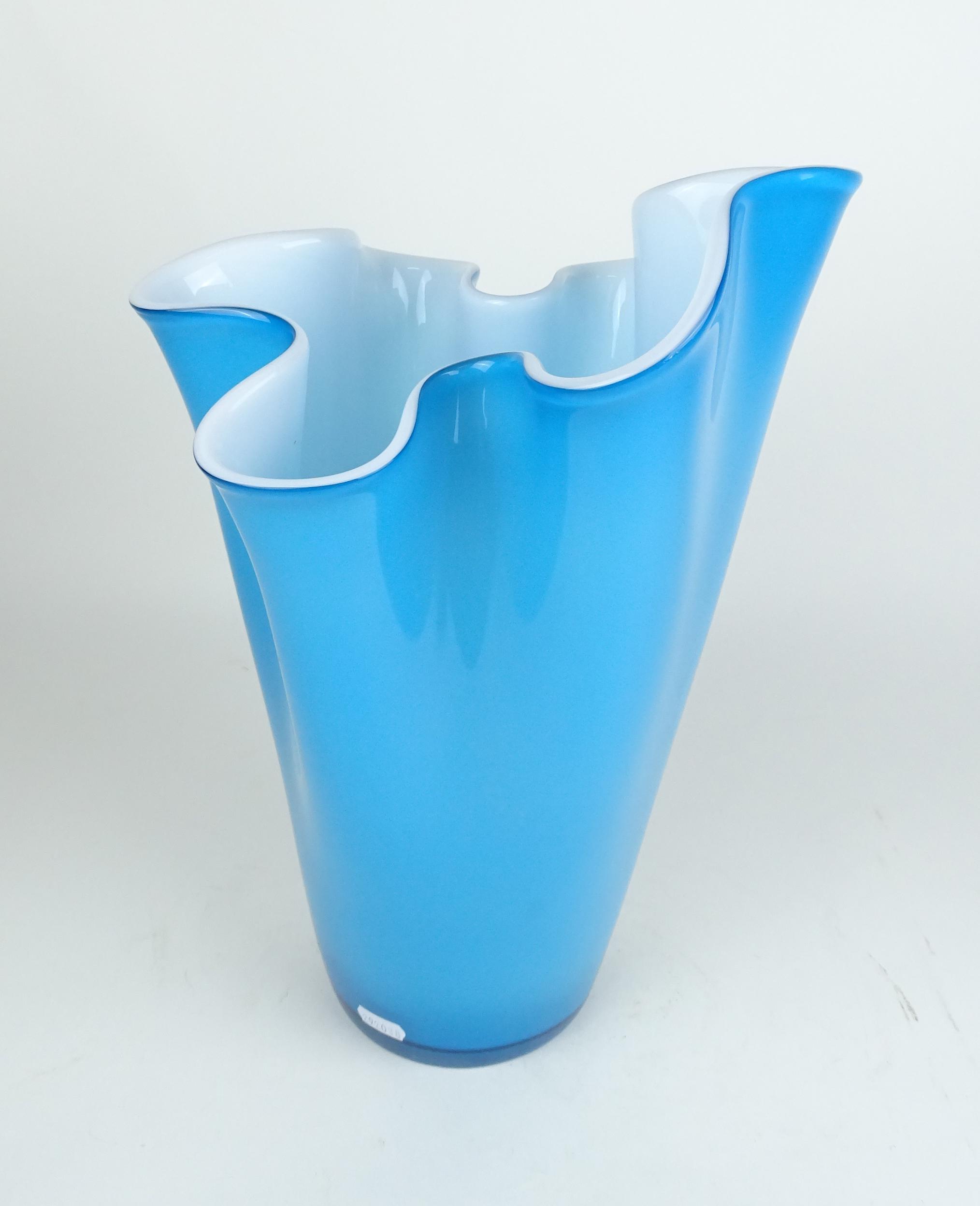 Verrerie: Grand vase en verre attribué à Murano forme dit -Mouchoir- (1 pt ecl v