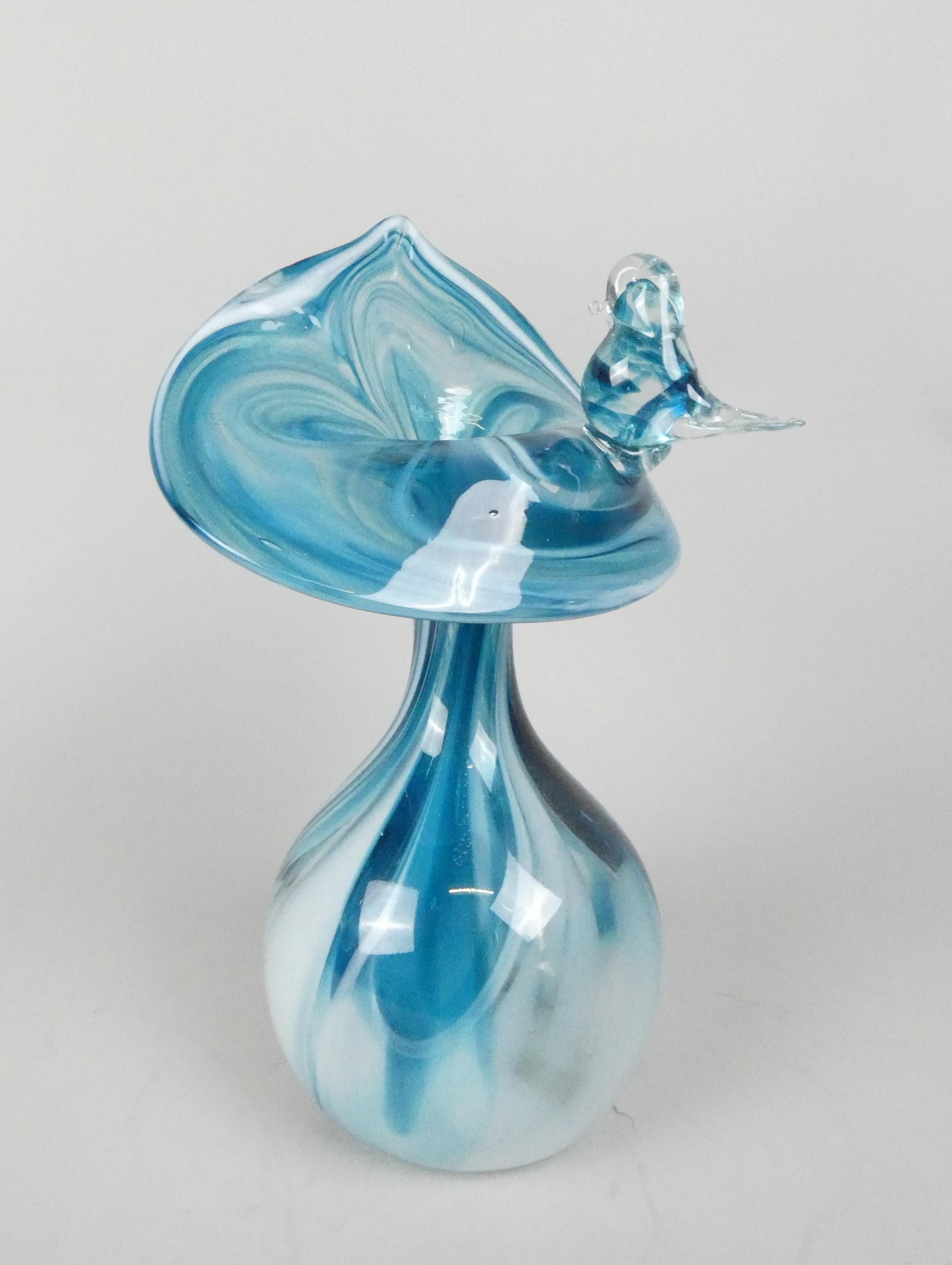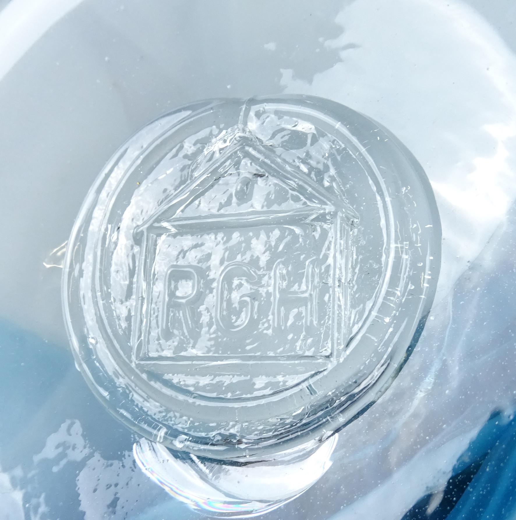 Verrerie: Vase en verre soufflé à l'oiseau cachet RGH sous la base Romische Glas