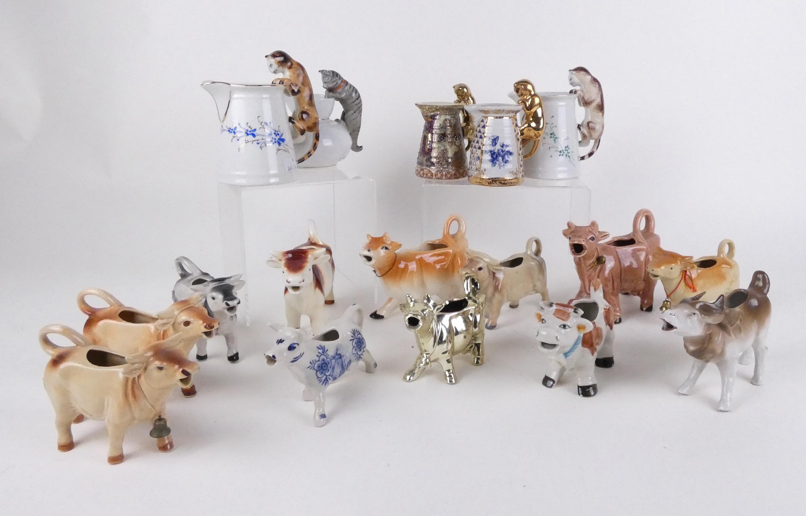 Céramique: Collection de pots à lait: avec anse chat (cheveux) (5), en forme de vache (12) (17pcs)