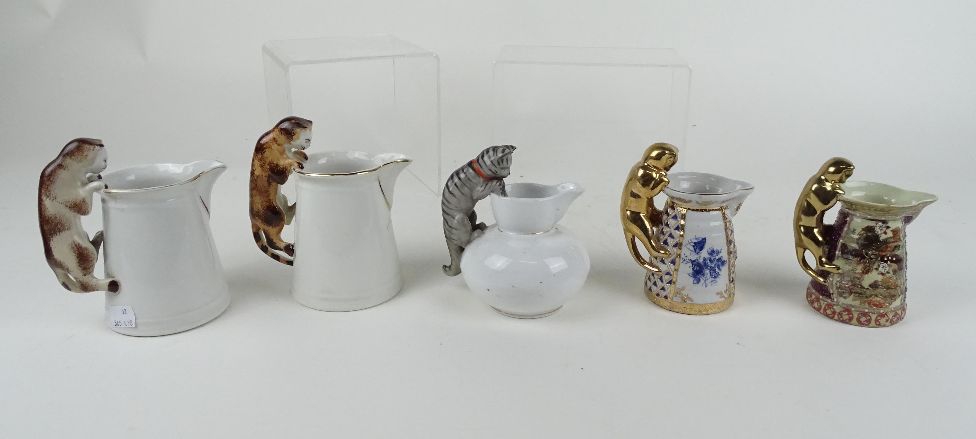 Céramique: Collection de pots à lait: avec anse chat (cheveux) (5), en forme de