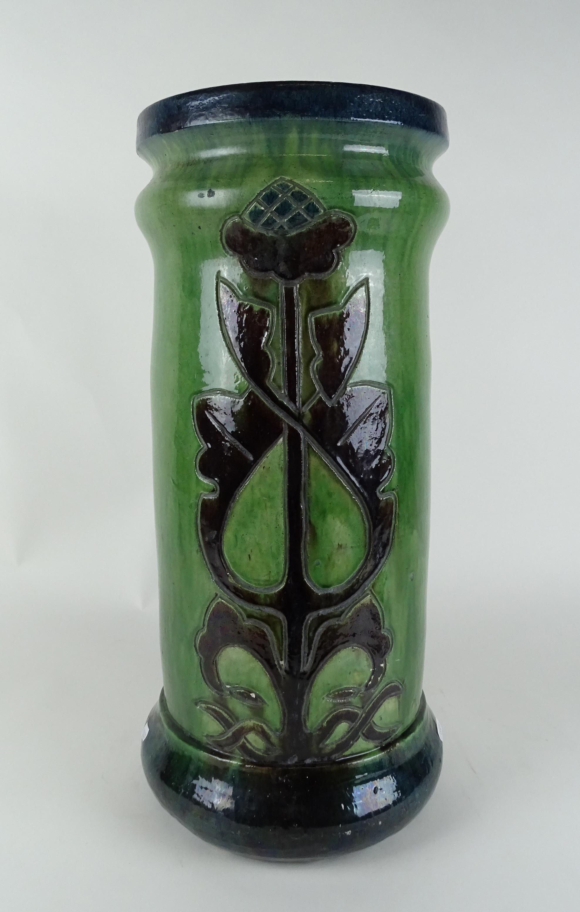 Céramique: Porte-parapluie en faïence flamande (egr, ecl) à décor d'un blason stylisé -dragon- H:62,5 Diam:26,5cm