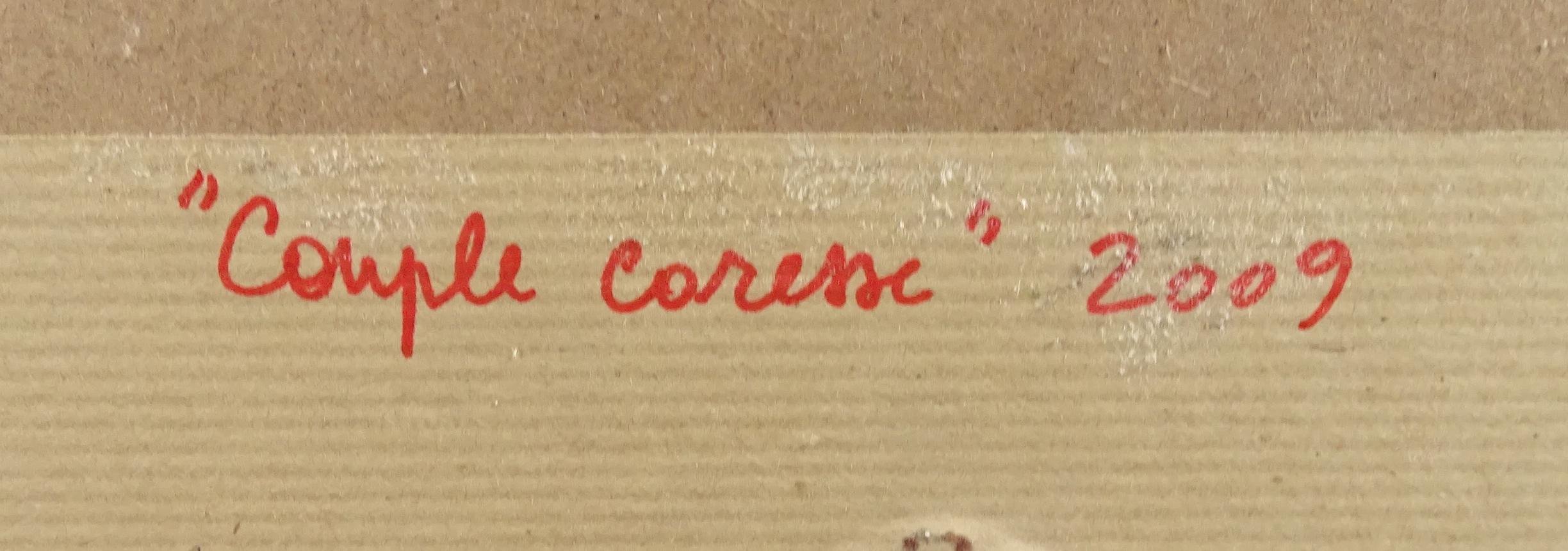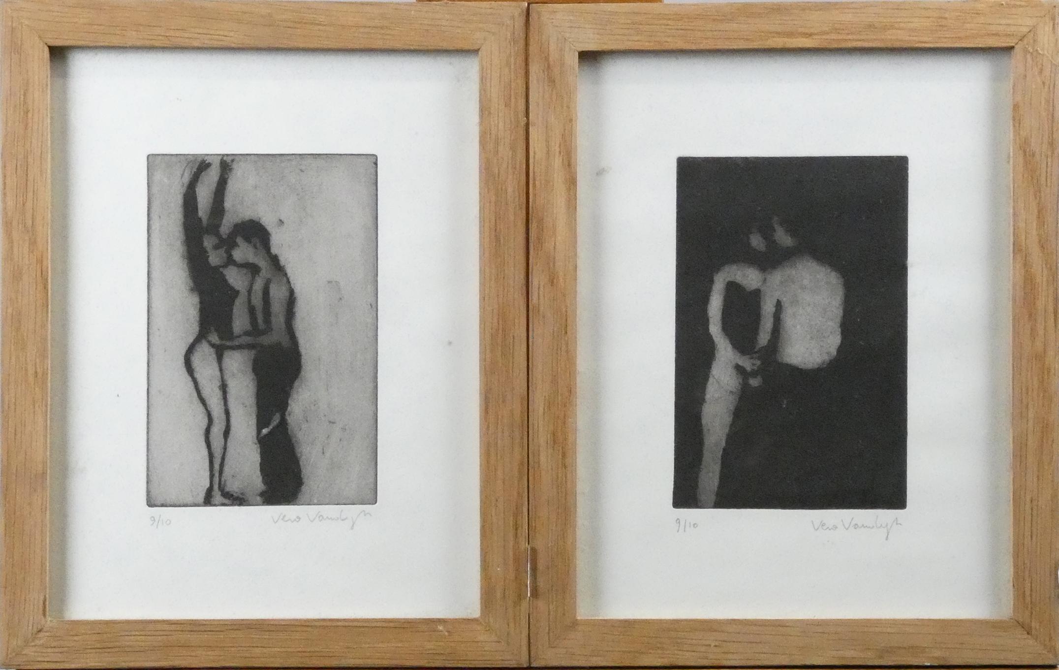 Estampe: Eau-forte daté 2009 num 9/10 signé VANDEGH Véro (20e, 21eS) (2) -Déshabillez moi- et -Couple caresse- 17x11cm cadre bois ss verre