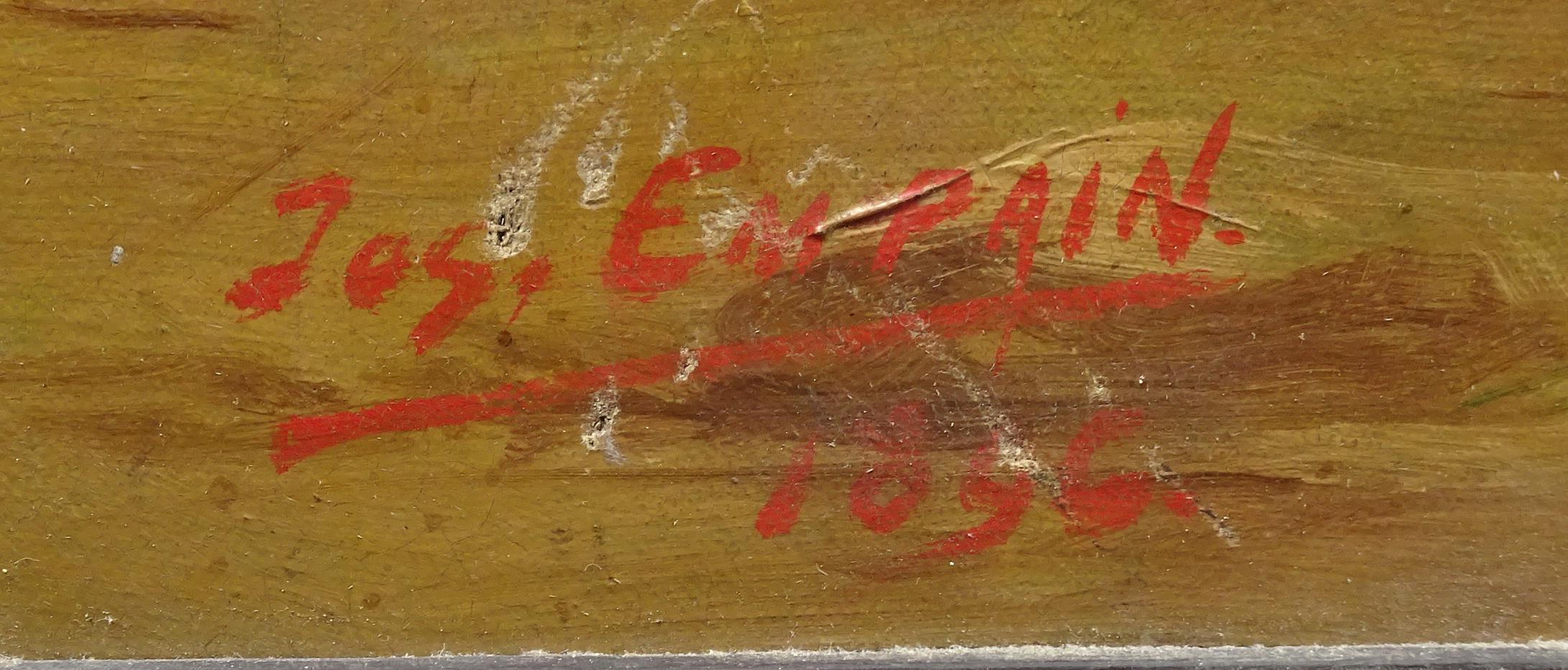 Tableau HST (rest, pt trous, usure) -Cours d'eau de village- daté 1896 signé Jos.EMPAIN *EMPAIN J.* (Joseph) (1867, 1940) 136x127cm