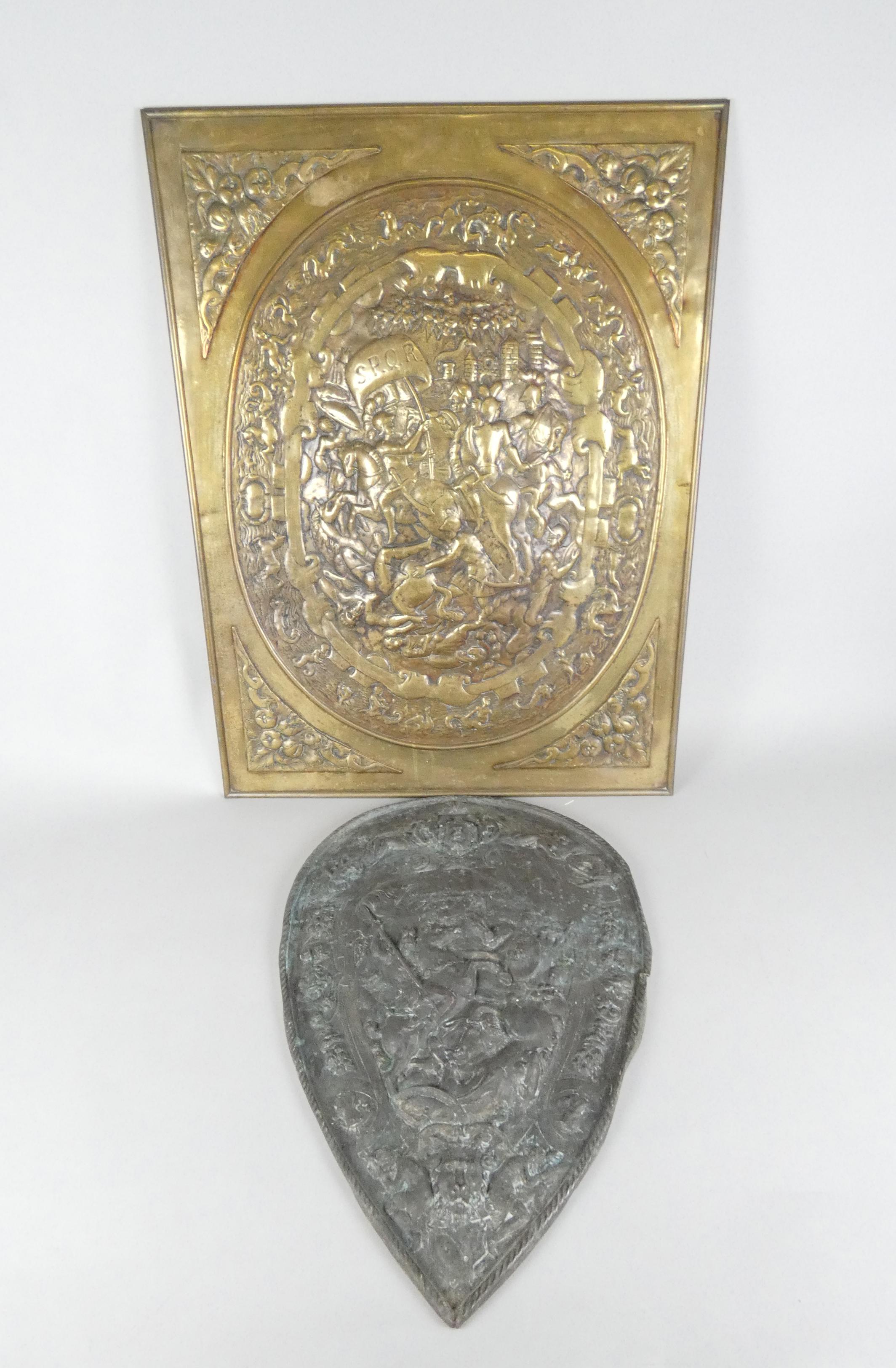 Objet: Bouclier et plaque en cuivre -Henri II- 65x45cm -SPQR- 88x66cm