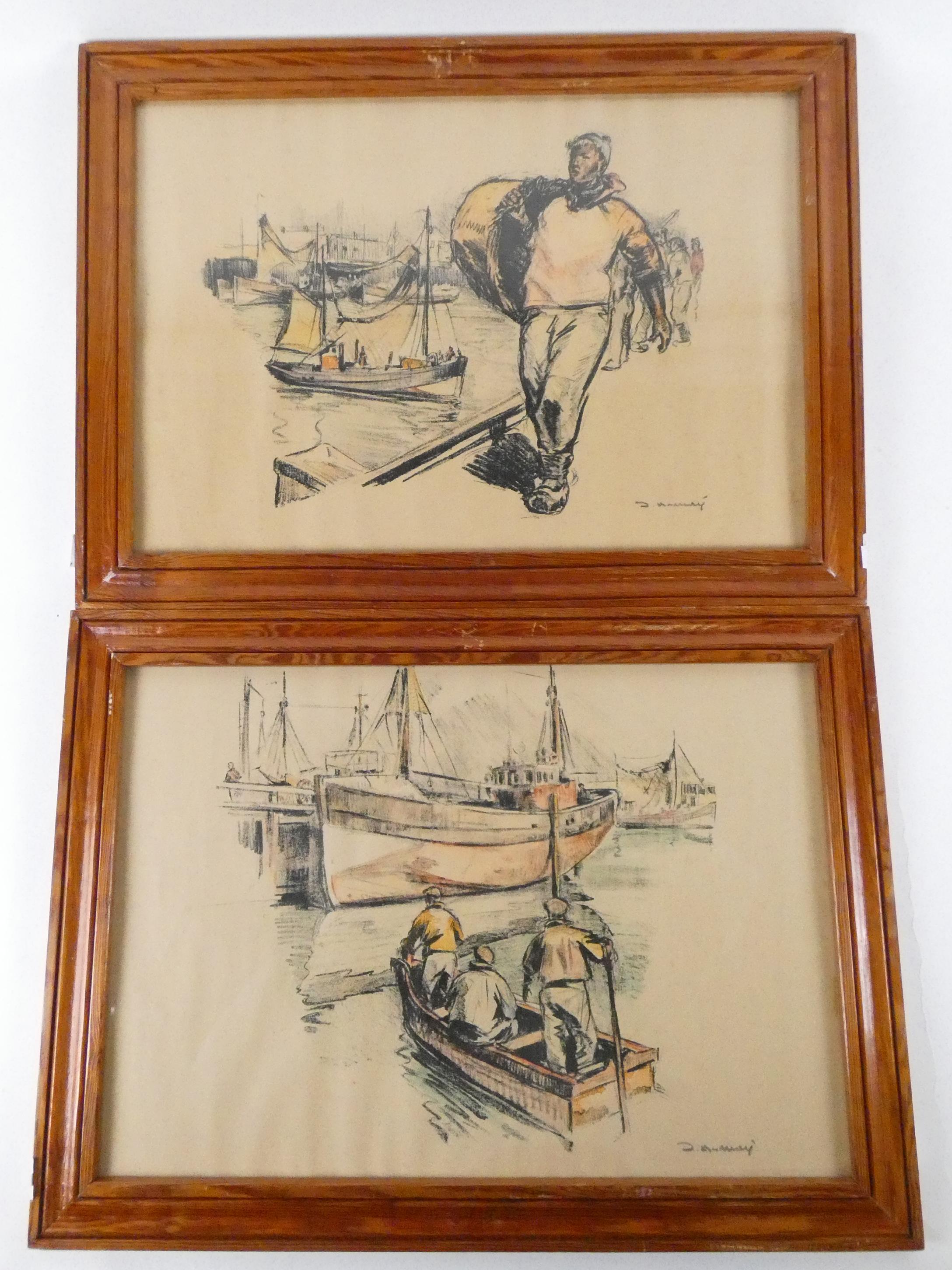 Estampe: Eau-forte (2pcs) -Vue du port- signé *DONNAY J.* (Jean) (1897, 1992) 34x38cm cadre en bois