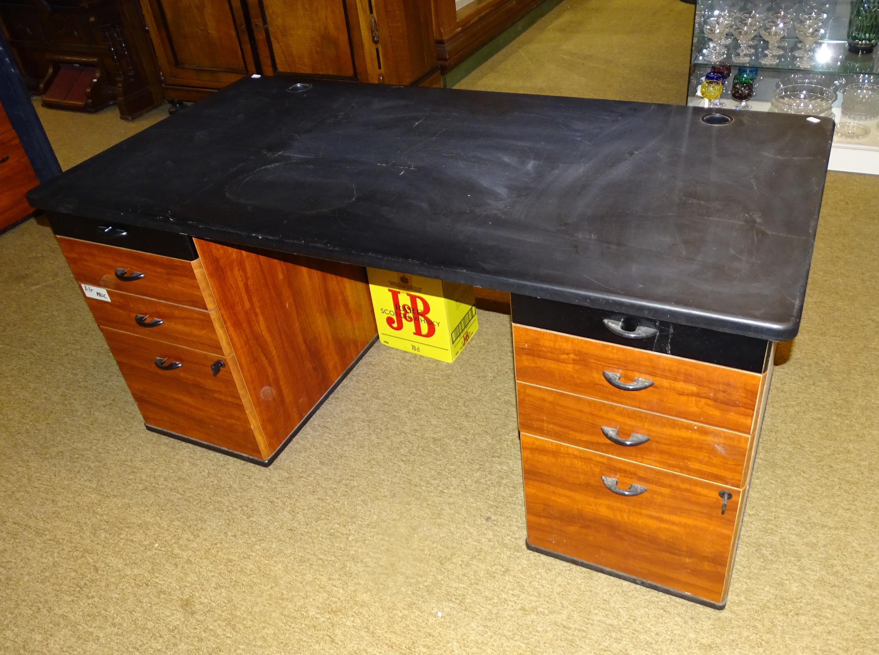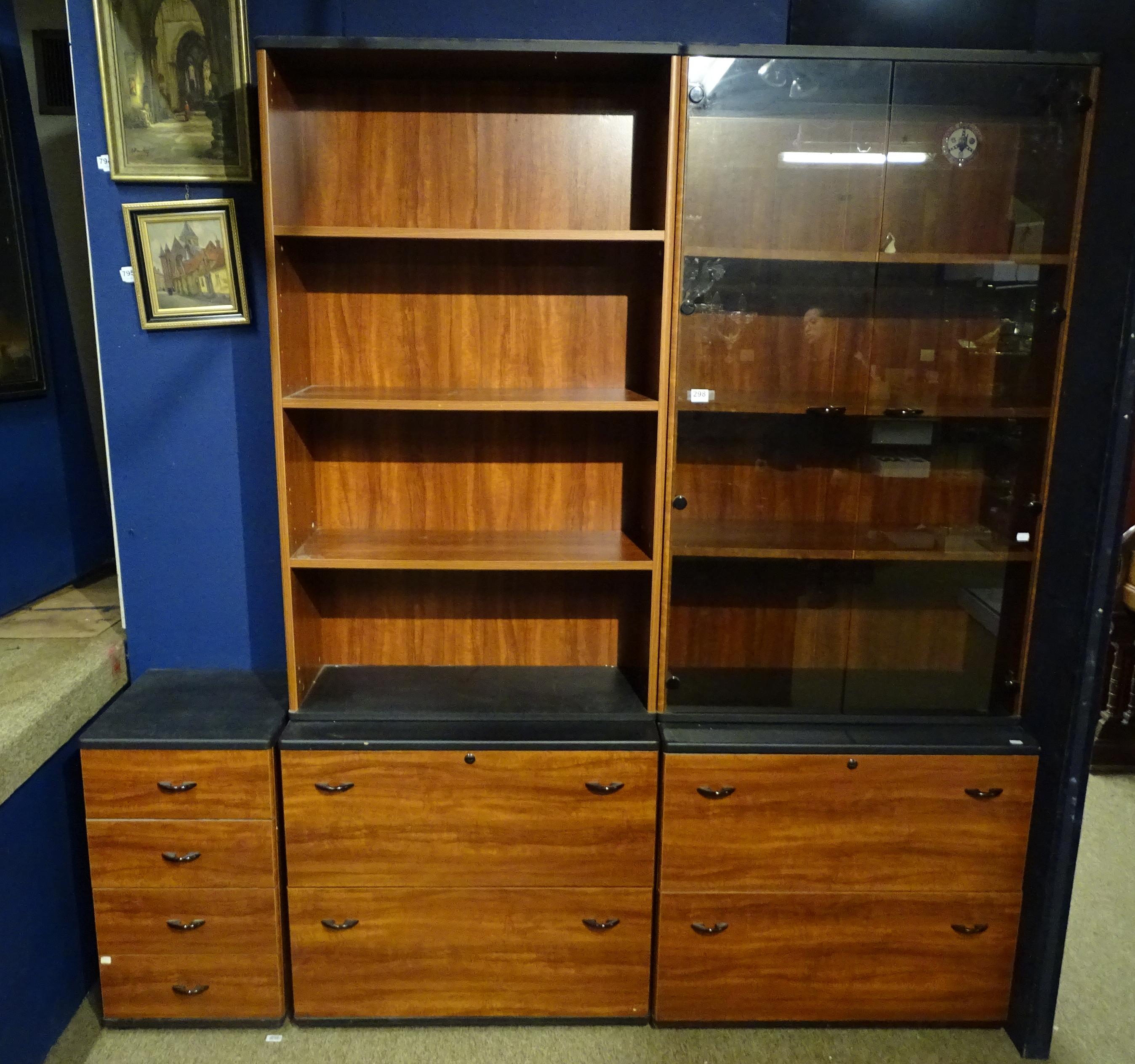 Meuble: Ensemble de bureau en finition palissandre bureau et bibliothèque en 2 éléments +bloc tiroirs (usures) (3pcs)