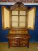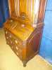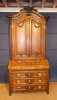 Meuble: Scriban Namurois 2 corps en chêne 3 tiroirs 1 tablette (comprenant 6T) 2portes chapeau de gendarme sculpté au panier fleuri 278x130x62cm