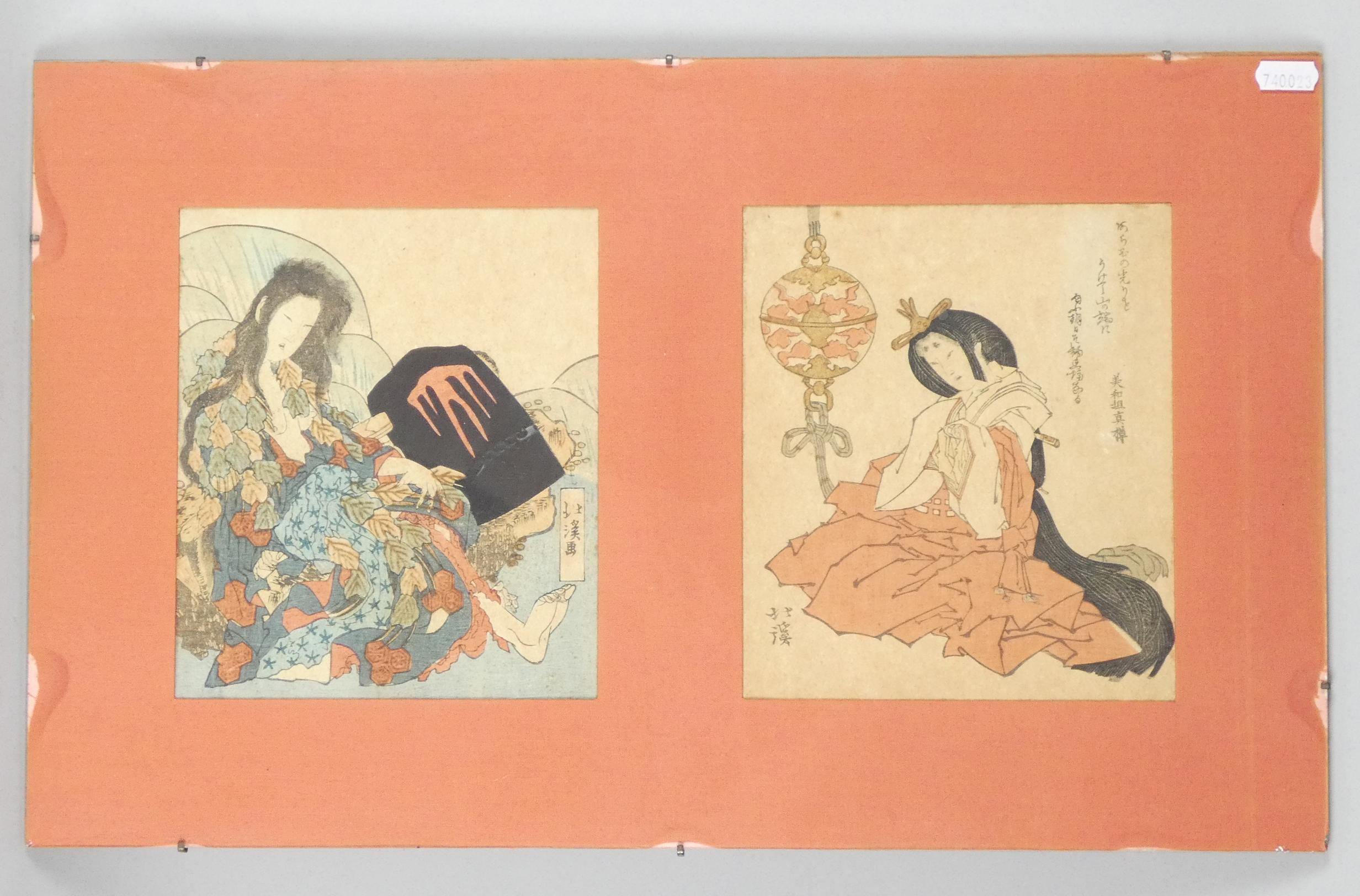 Asiatique: Estampe japonaise (2pcs) nishiki-e-yama-uba et Dame de la cour des Fujiwara gaufrage au vêtement d'après *HOKKEI T.* (Totoya) (1780, 1850) 21x18cm s-v