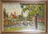 Tableau HSCarton -Vue de BRUGES- signé *PARENT R.* (Roger) (1881, 1986) 50x74cm cadre bois et or