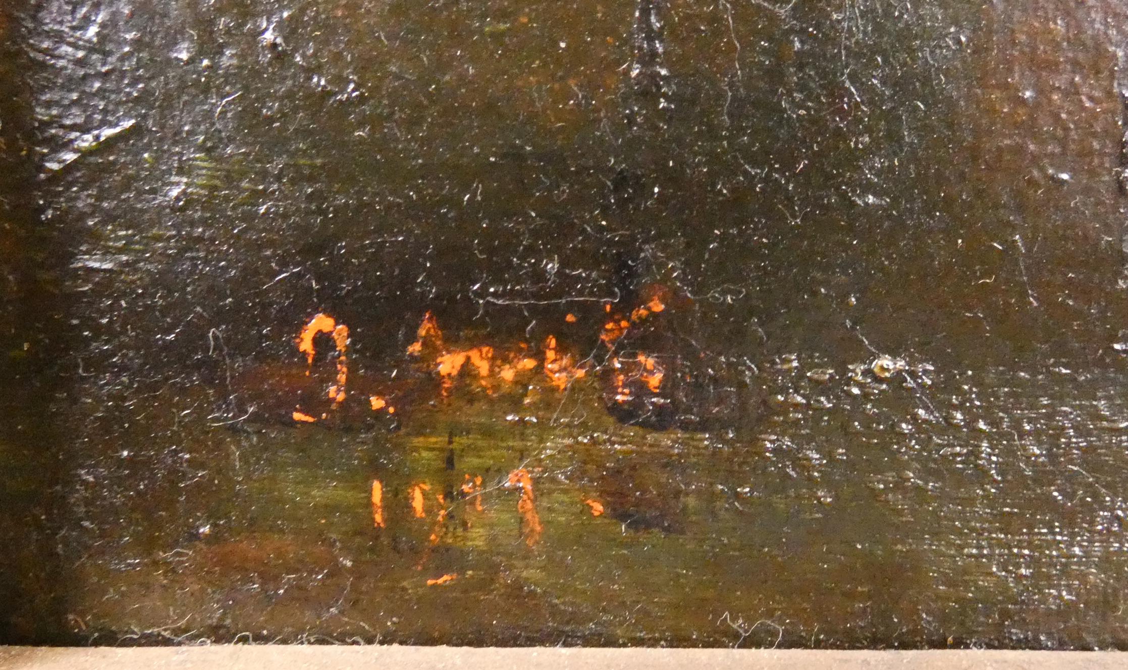 Tableau HST -Paysage Animé- signé fin 19e/déb 20eS 40x50cm cadre de style doré (acc)