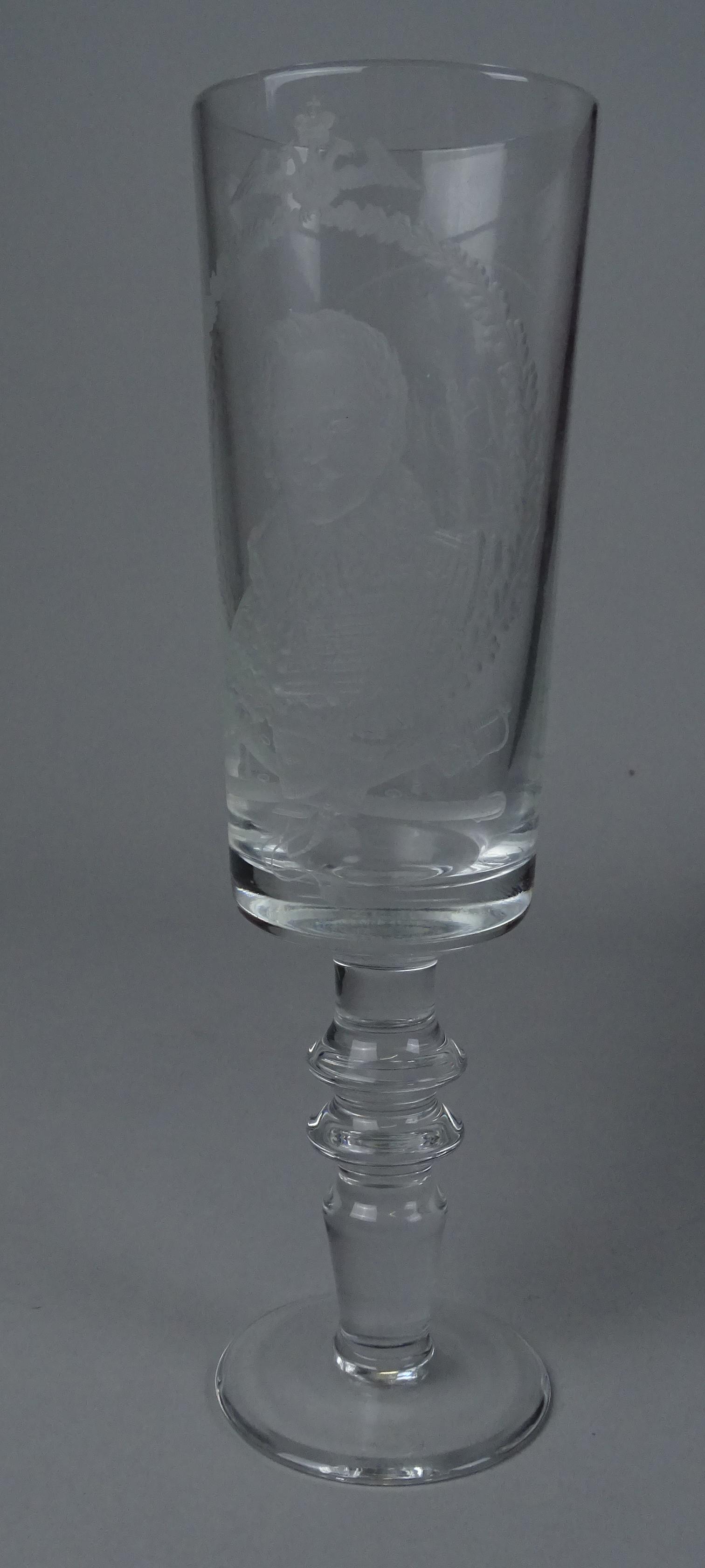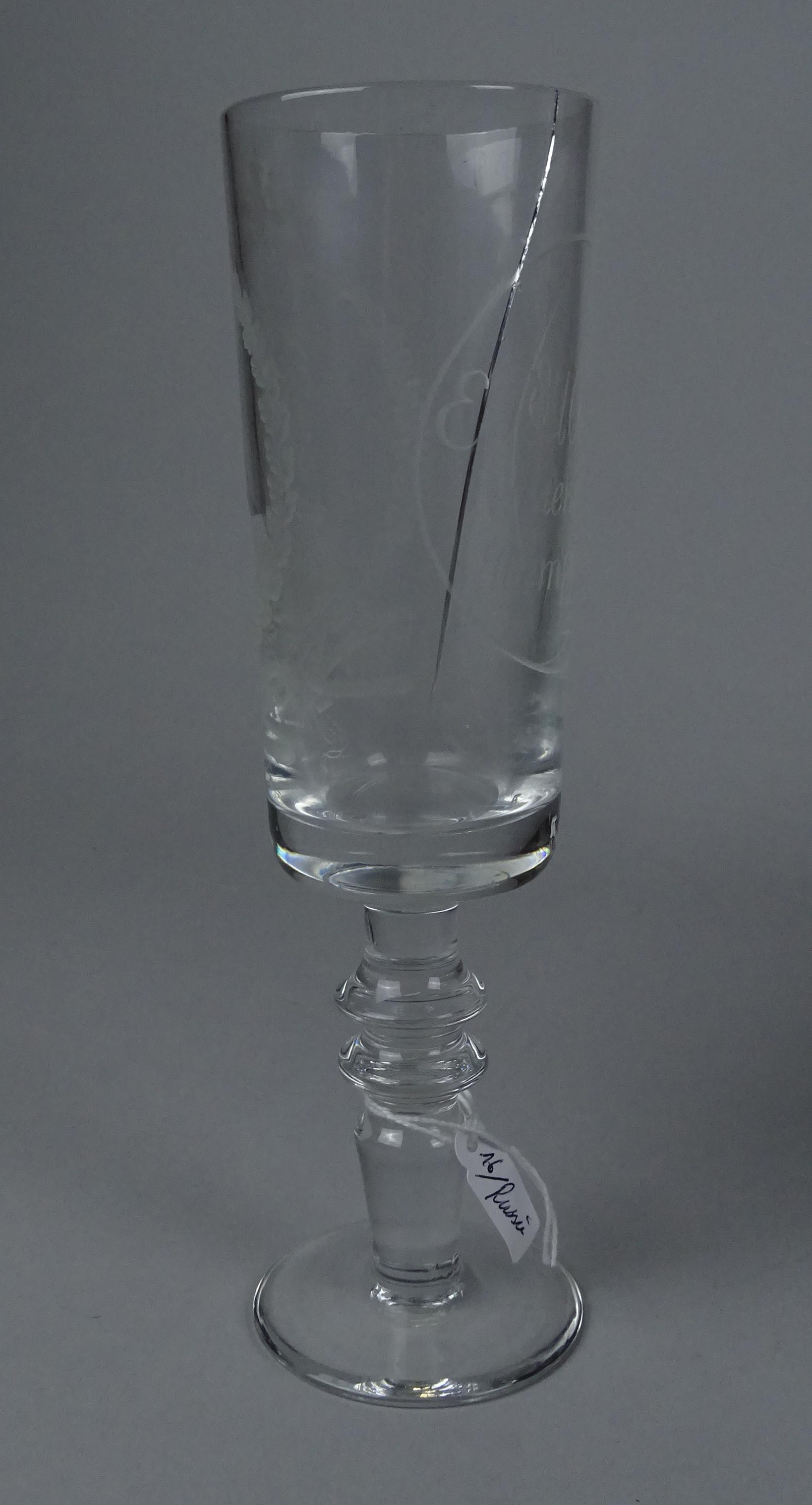 Verrerie: Coffret de 6 Mazagran cristal gravé (1 fendu) fond en velours rouge H d'un Mazagran: 21,5cm
