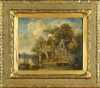Tableau HSCuivre -Maison au bord de l'eau animé- anonyme 19èS 33x40cm cadre de style doré