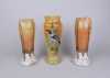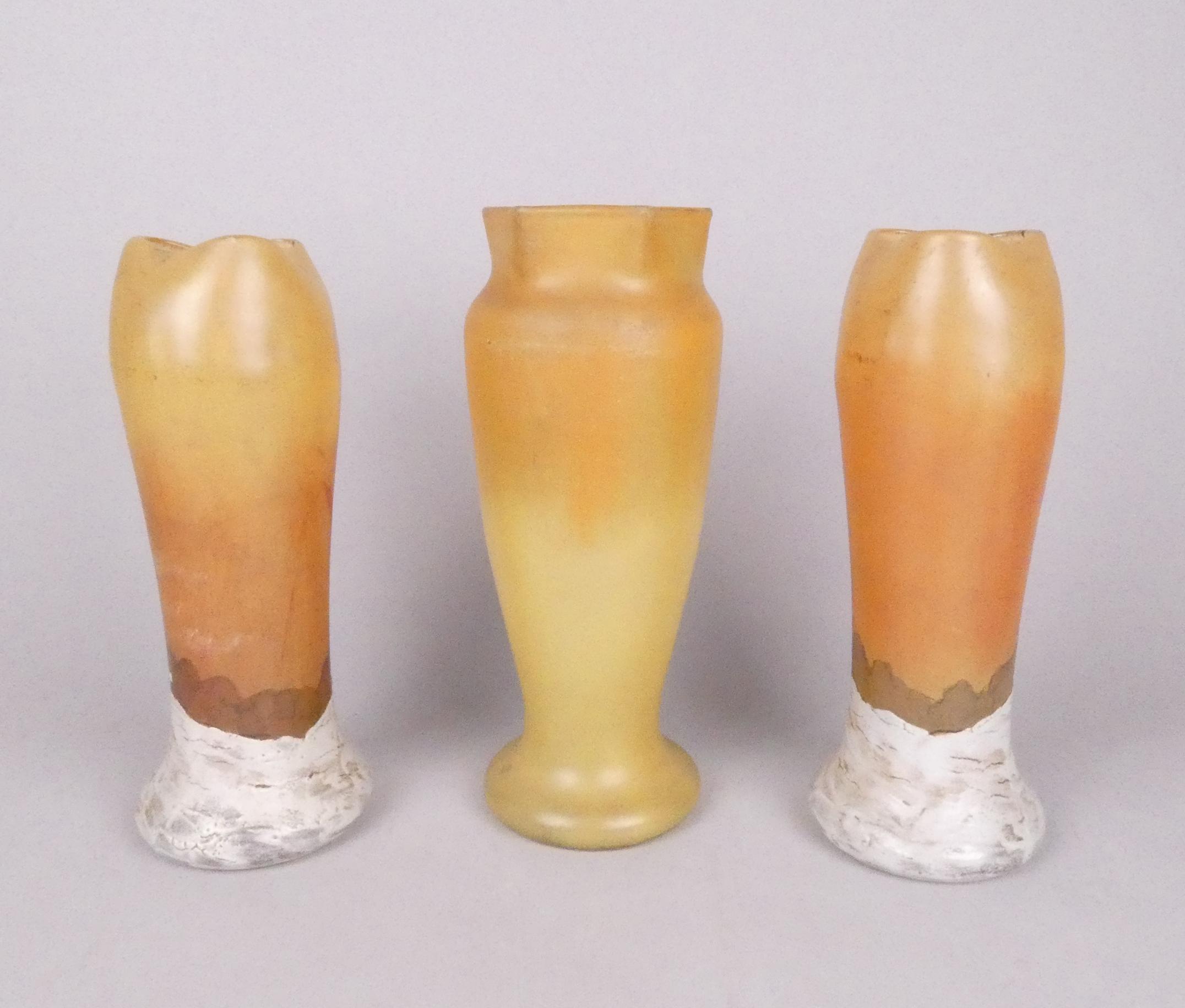 Verrerie: attribué à LEGRAS (3pcs): paire de vases à décor hivernal animé + 1 vase à décor d'un oiseau H:27,5 et 29cm