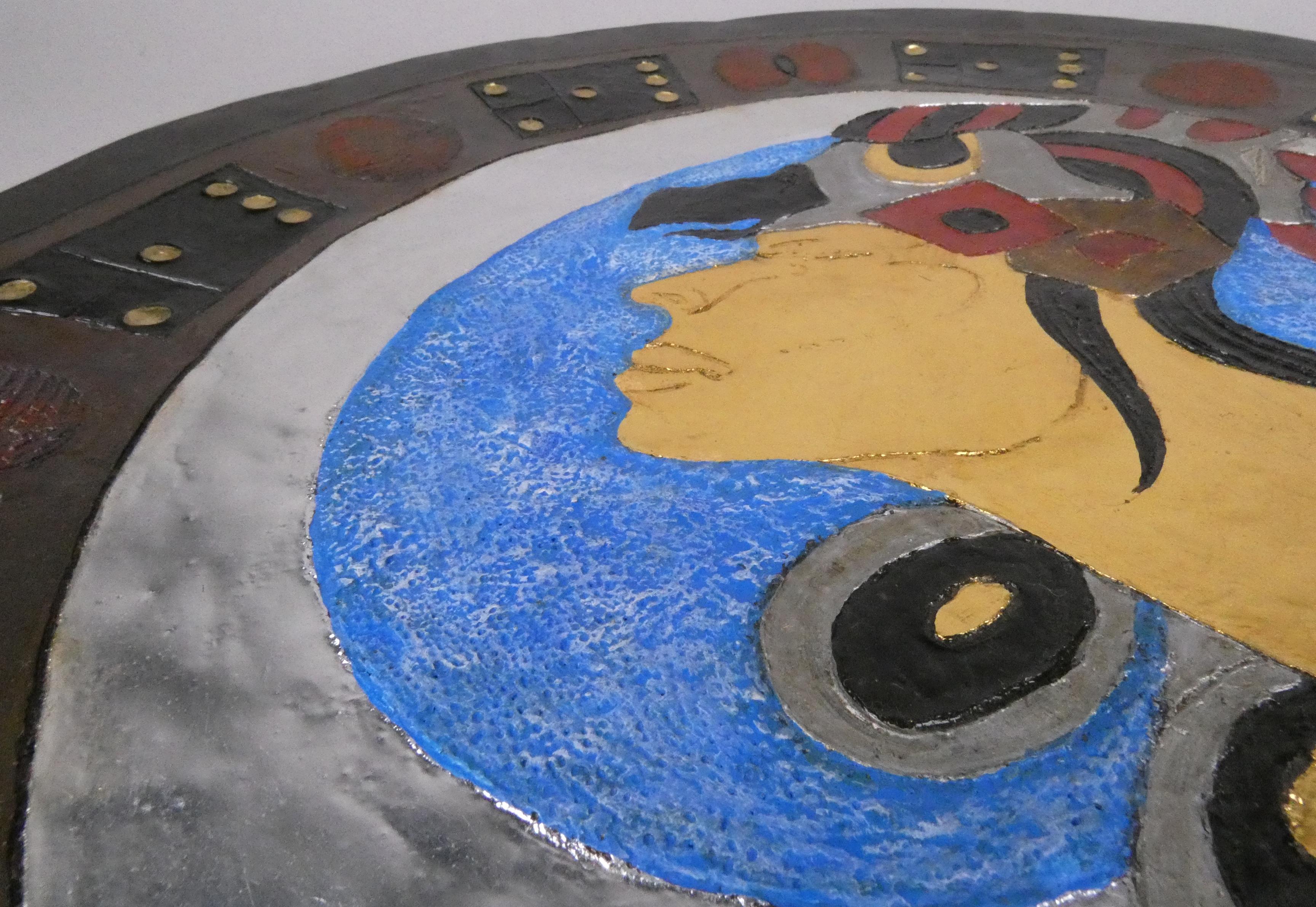 Céramique: Plat en céramique émaillée -Profil de jeune femme- n°11/20 signé au revers *VAN TUERENHOUT J.* (Jef) (1926, 2006) rehauts d'or et d'argent Diam:48cm