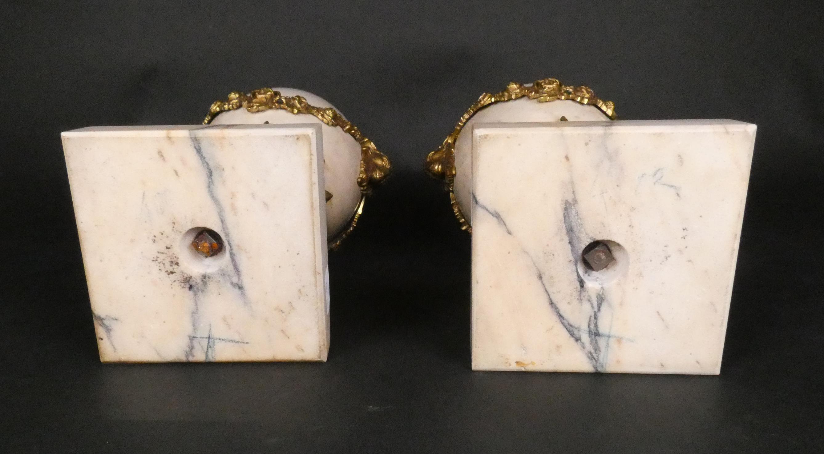 Objet : Paire de cassolettes en marbre et bronze doré ciselé