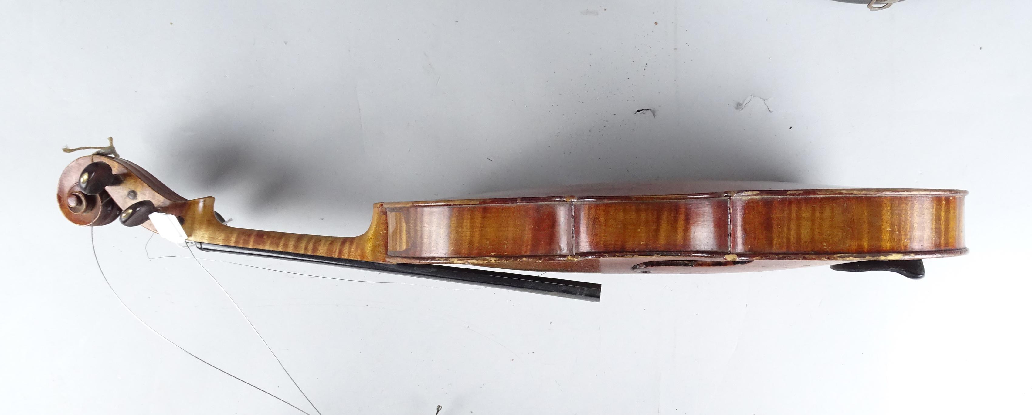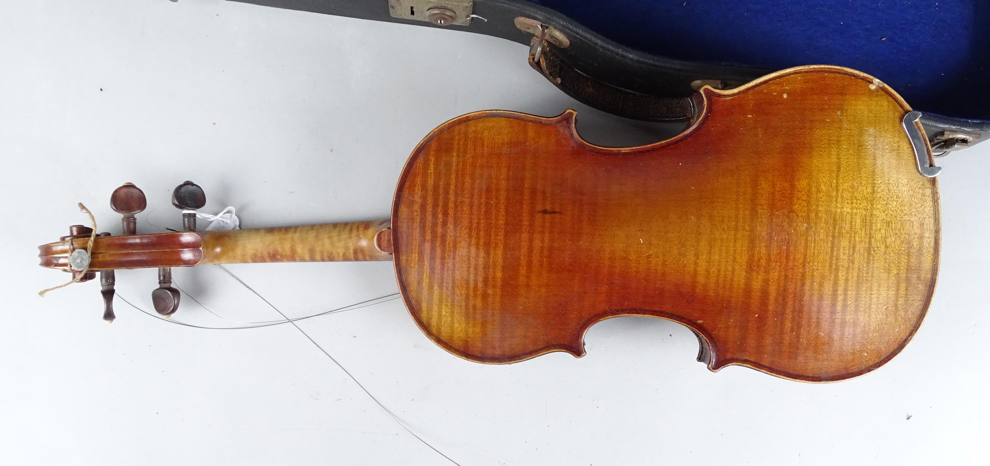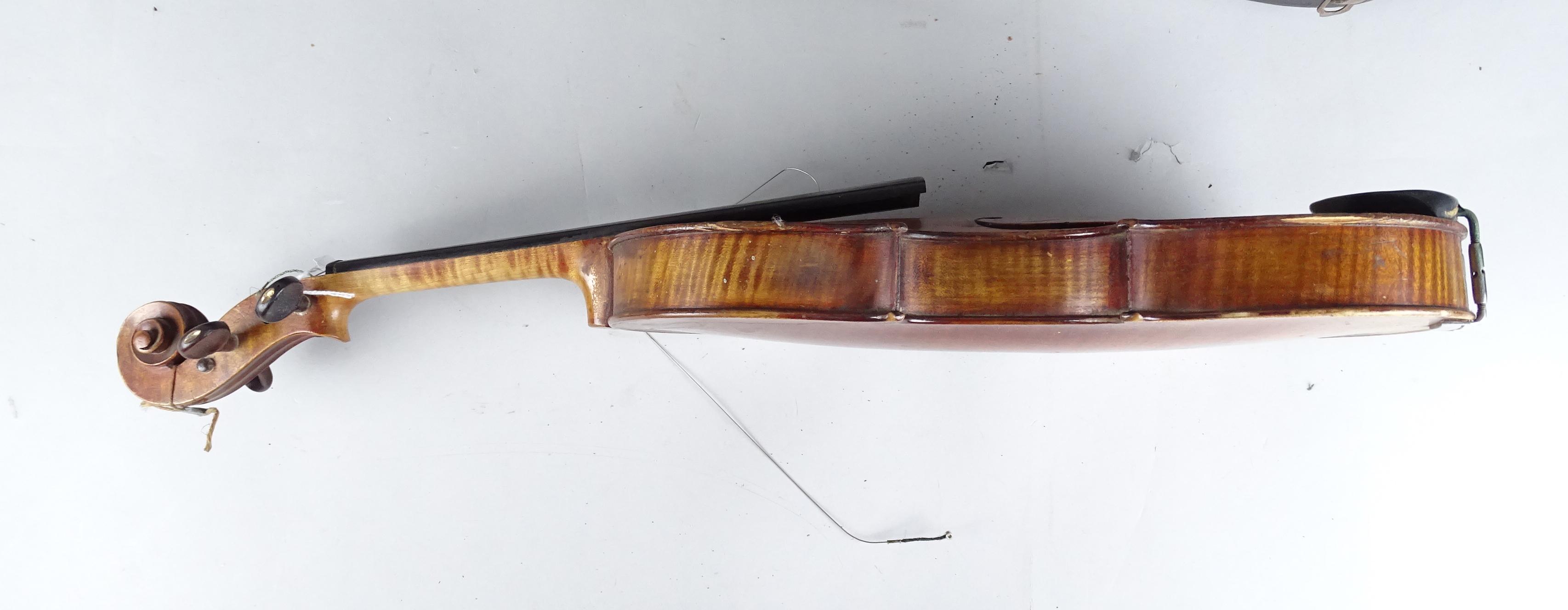 Musique: Violon ancien entier (usure, mq) dos en 1 partie étiquette apocryphe -PH. GUARNARIUS 1771- avec archet + étui