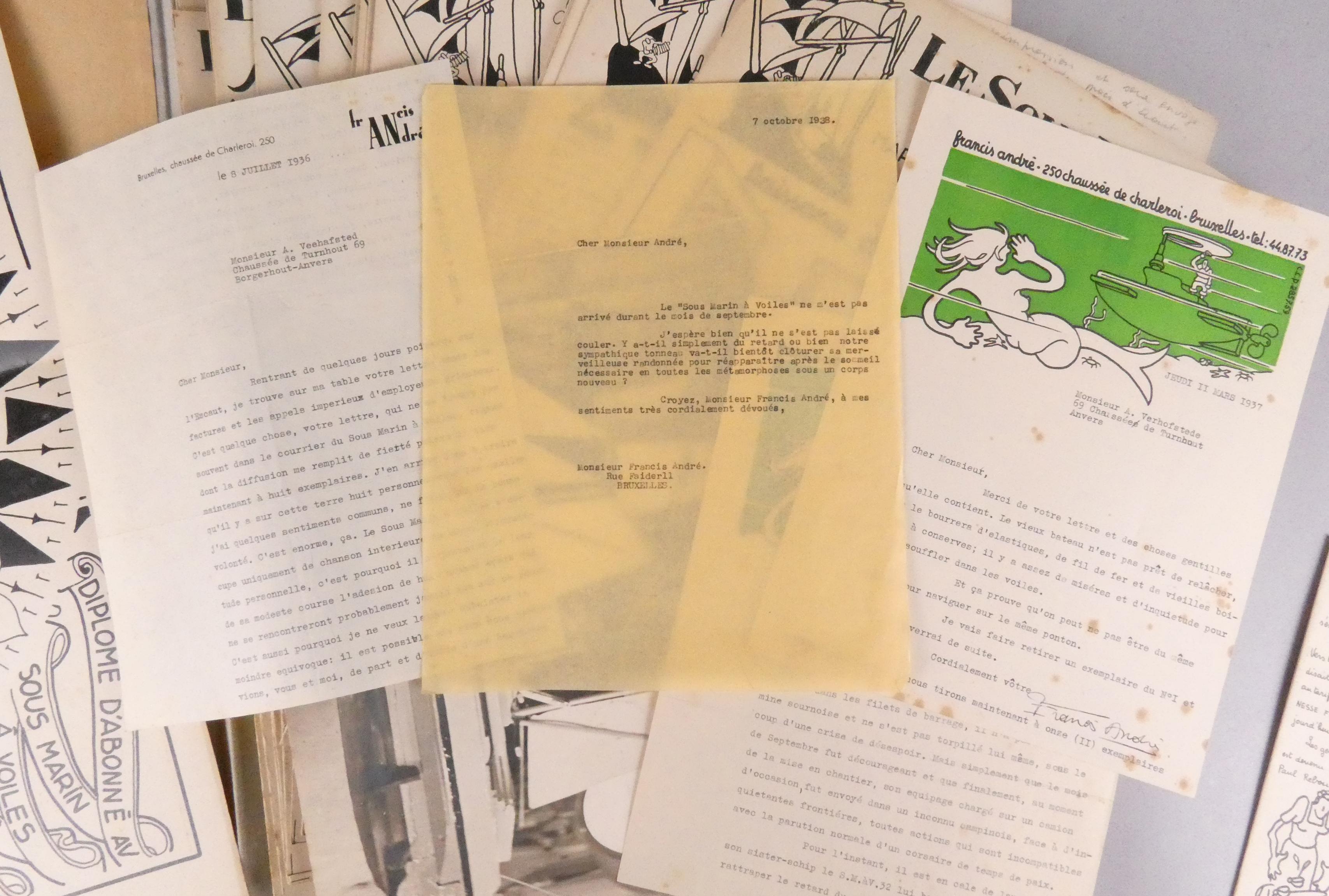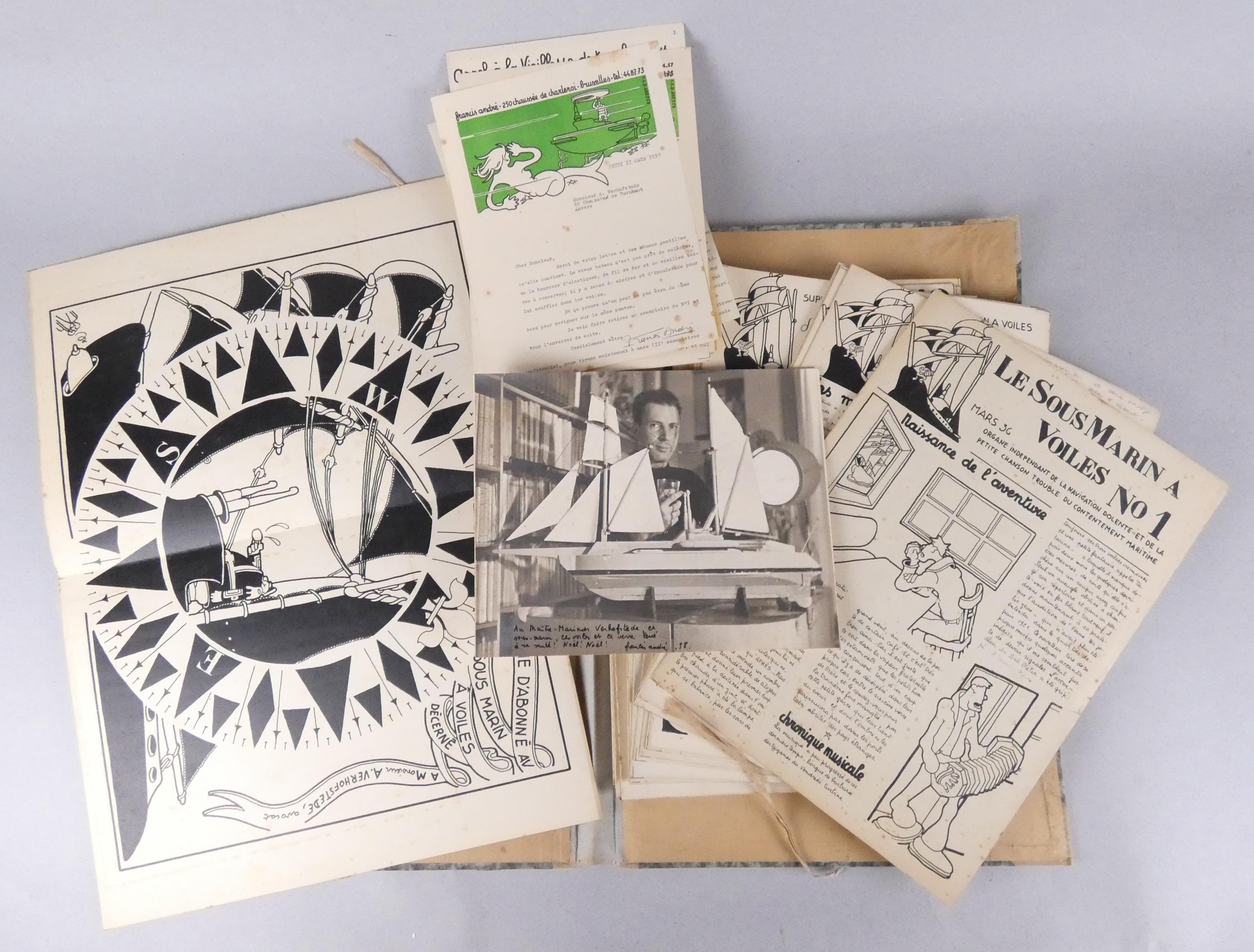Objet: documents concernant Le Sous Marin à Voiles *ANDRE F.* (Francis) (1906, 1972): photo argentique dédicacée, chroniques, lettres.
