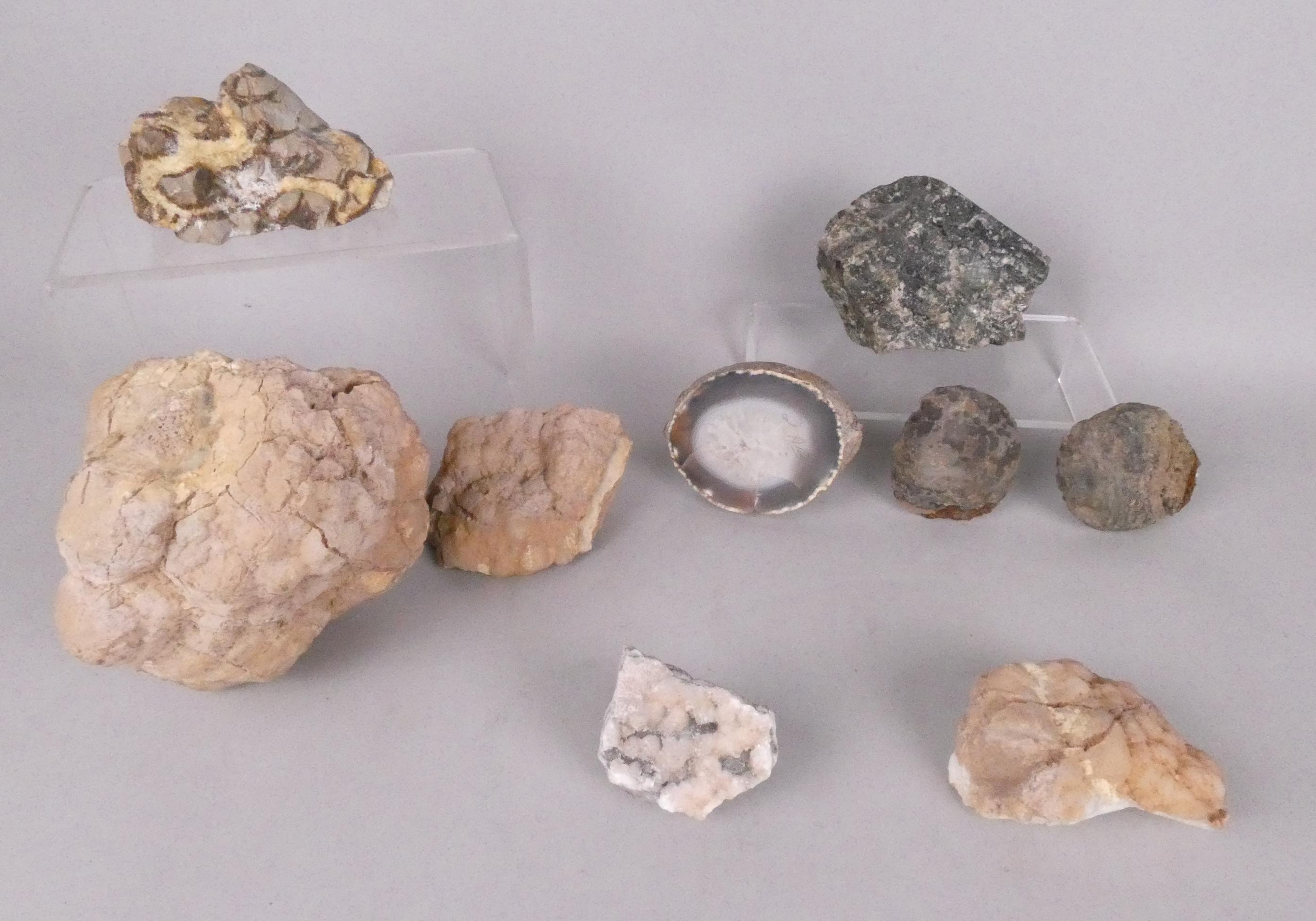 Collection de minéraux dont labradorite, agates (polie, géode), septaria,. (9pcs)