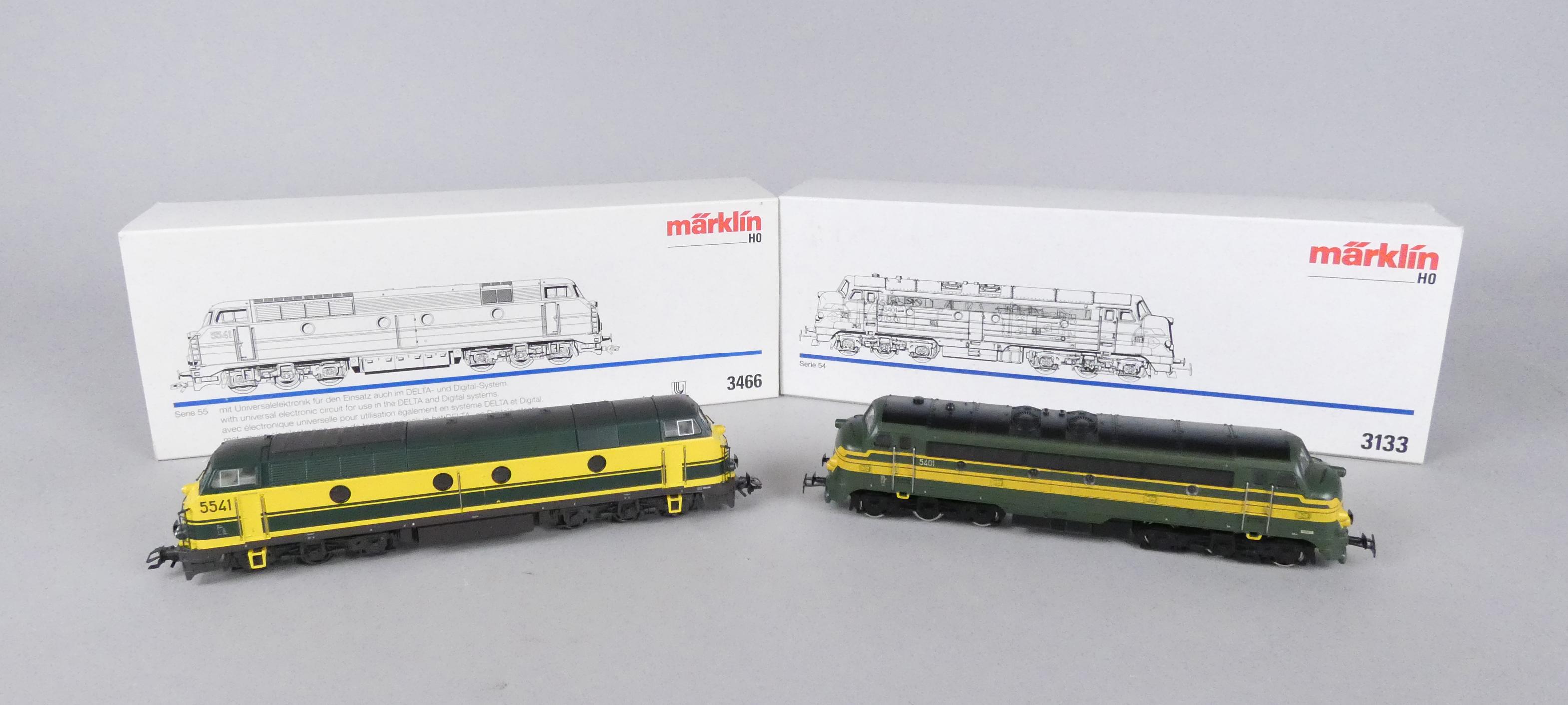 Jouet: Train MARKLIN H0 AC locomotive diesel SNCB(2): 3466 série 55 5541 + 3133 série 54 5401(ne roule pas) (en boite)