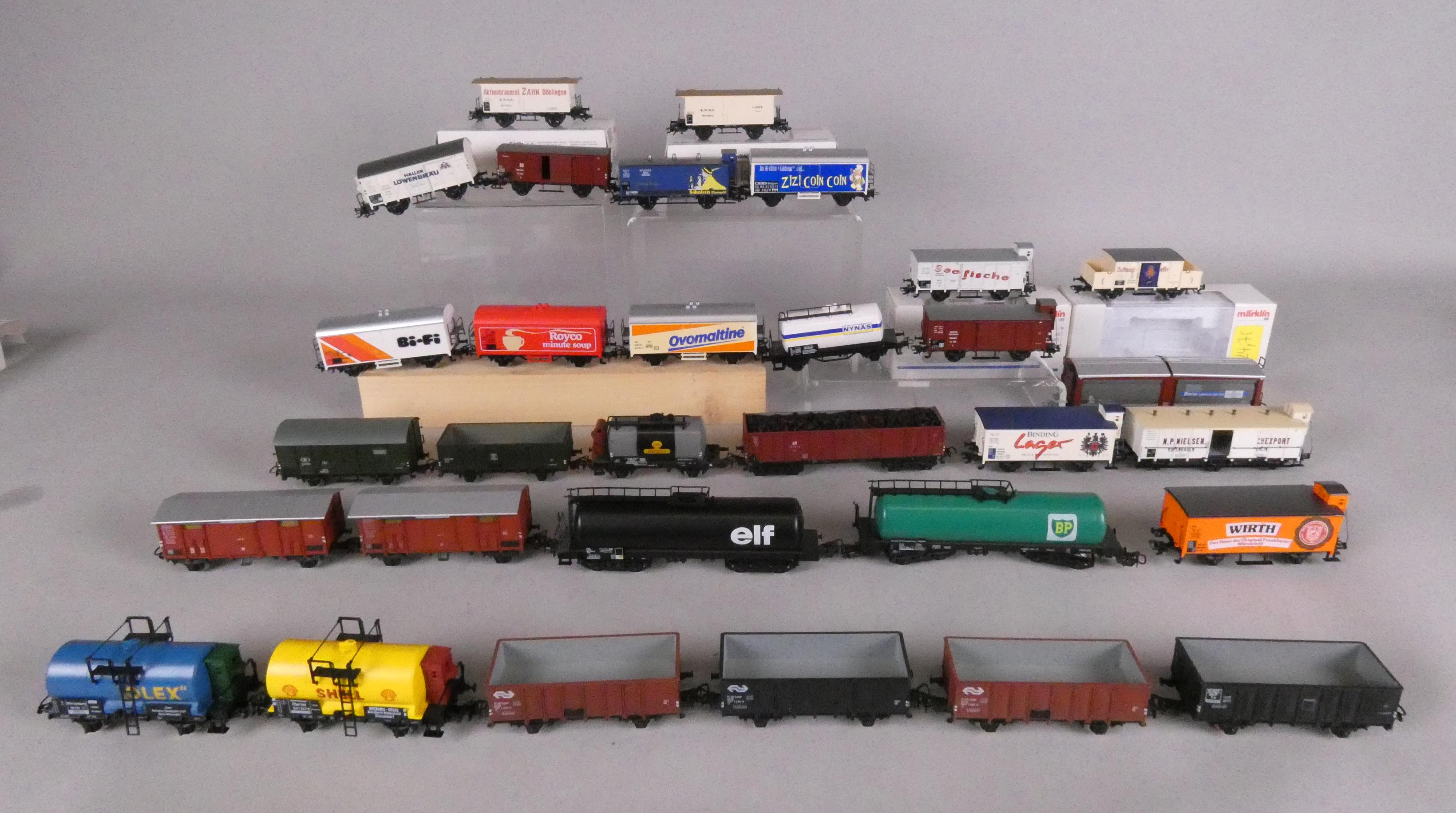 Jouet: Train MARKLIN H0 wagons de marchandises(23): dont ref: 48280, 48926, 4877, 4653, 4729,. + 8 PIKO (4mqe boite) (en boite) (31pcs)