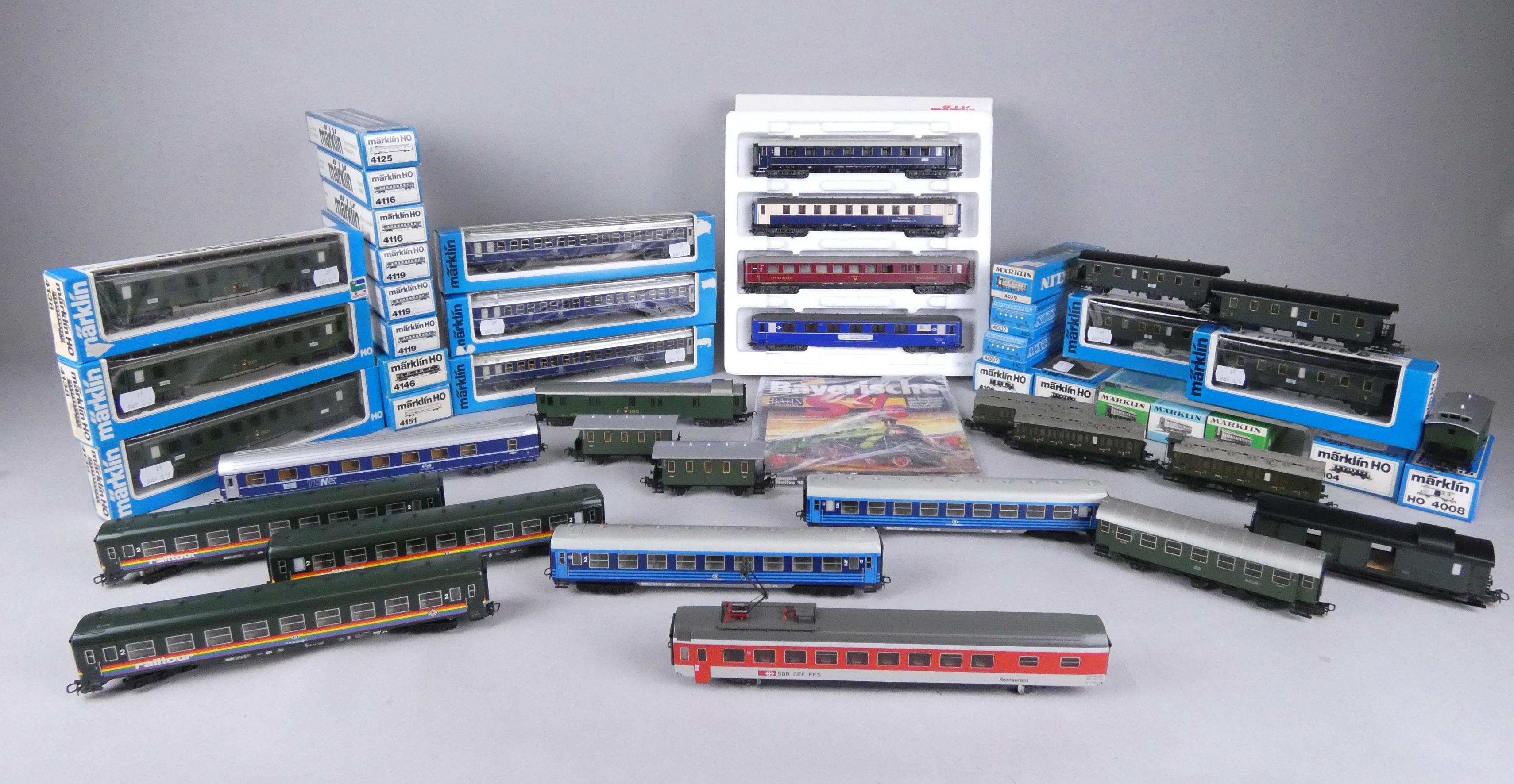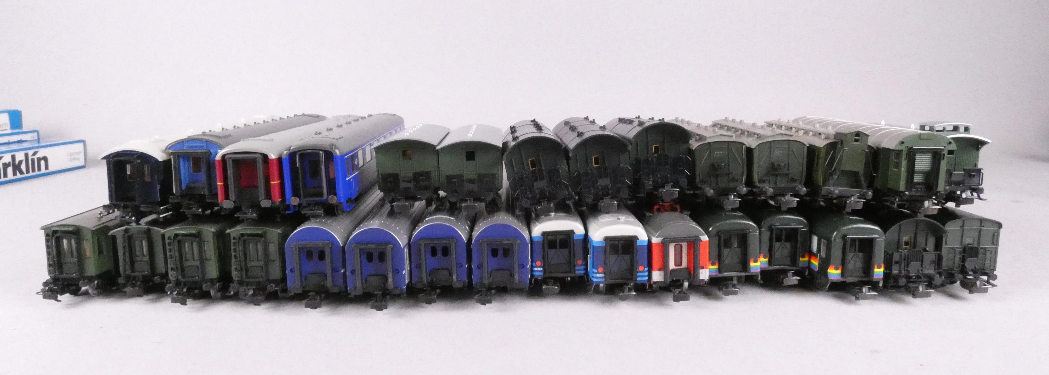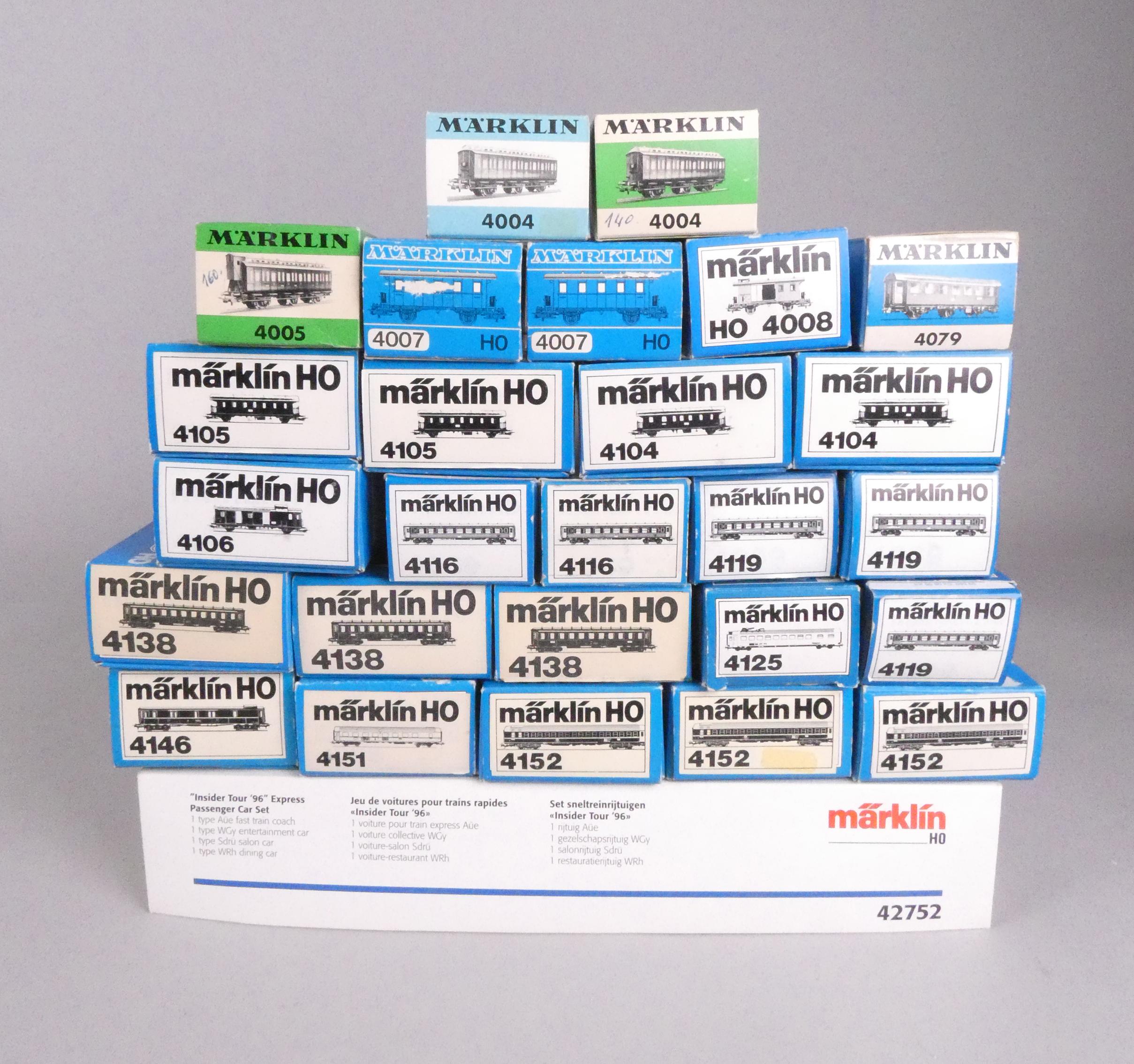 Jouet: Train MARKLIN H0 voitures voyageurs dont ref: 42752, 4138, 4146, 4119, 4125, 4152, 4104, 4105, 4106, 4004, 4005, 4006,... (27 boites) (30pcs)