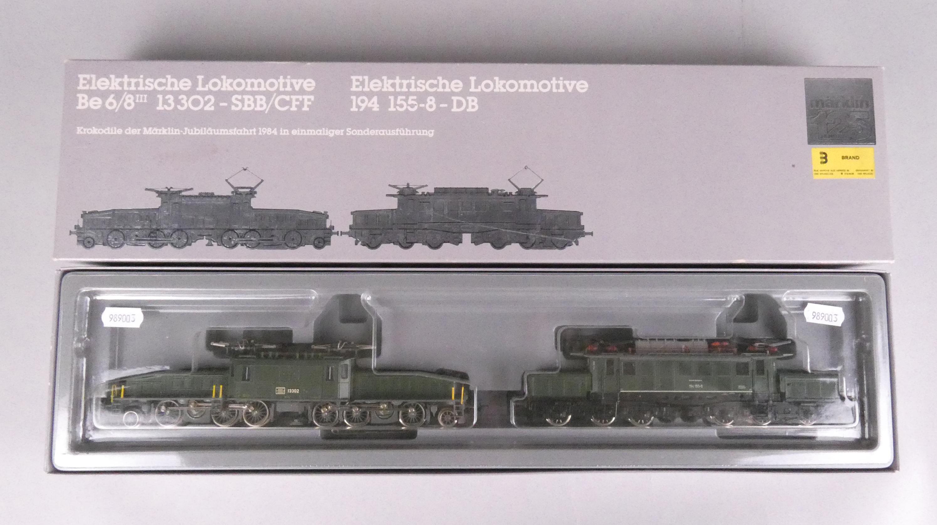 Jouet: Train MARKLIN H0: 3300 coffret 125 ans de deux motrices électriques crocodile: DB 194 155-8 et Be 6/8 Suisse 13302 (En boite)