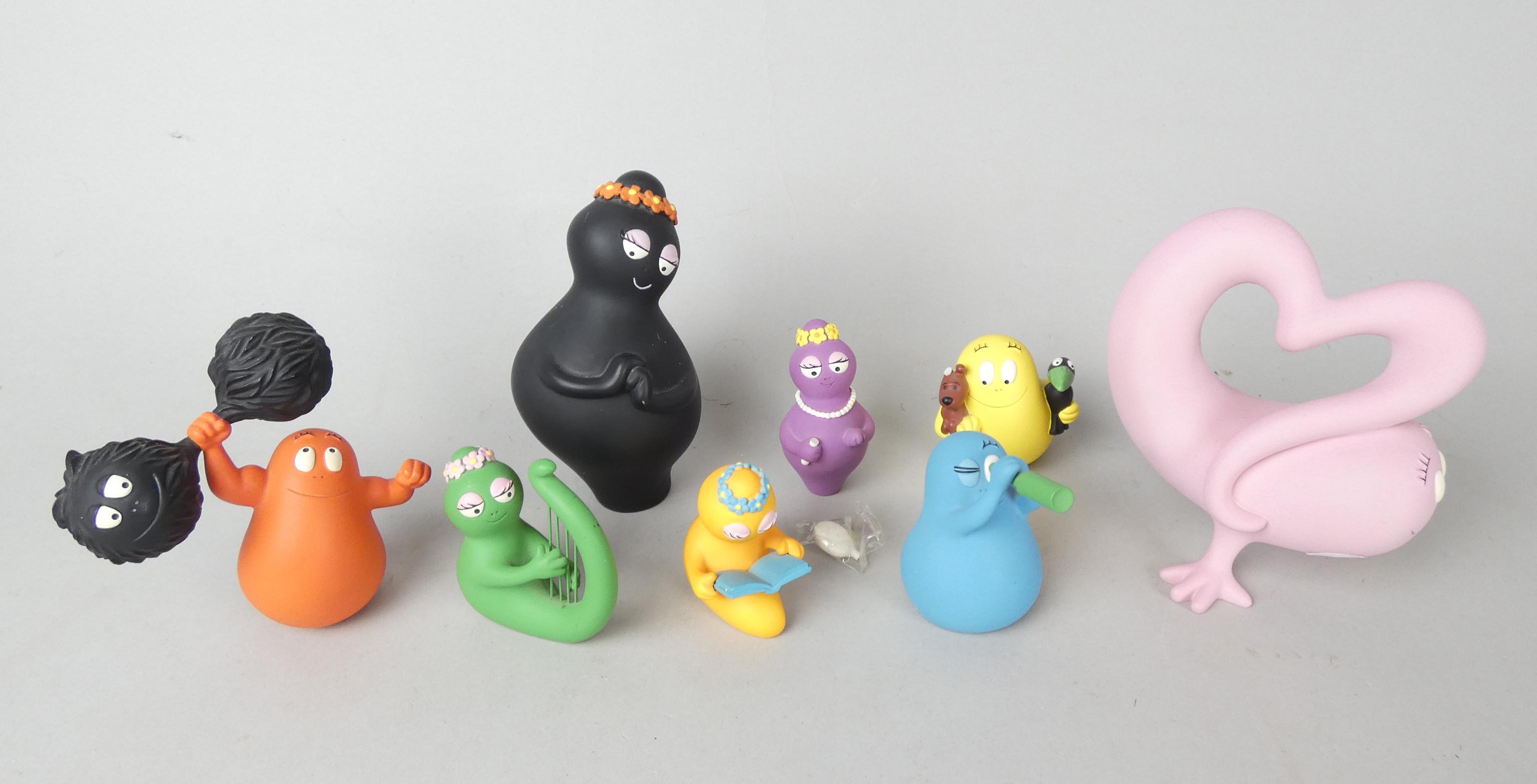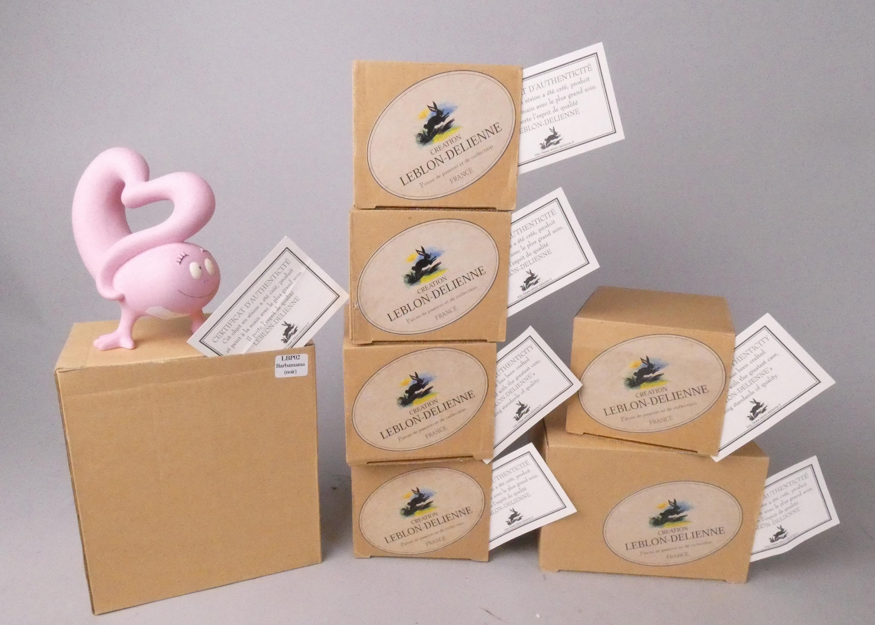 BD: figurines en résine (traces d'usage) série BARBAPAPA Leblon-Delienne certif (8p): B.mama H:12,5cm, B.bidou (acc), B.belle (acc), .. +B.papa en coeur (ss bte ni certif)