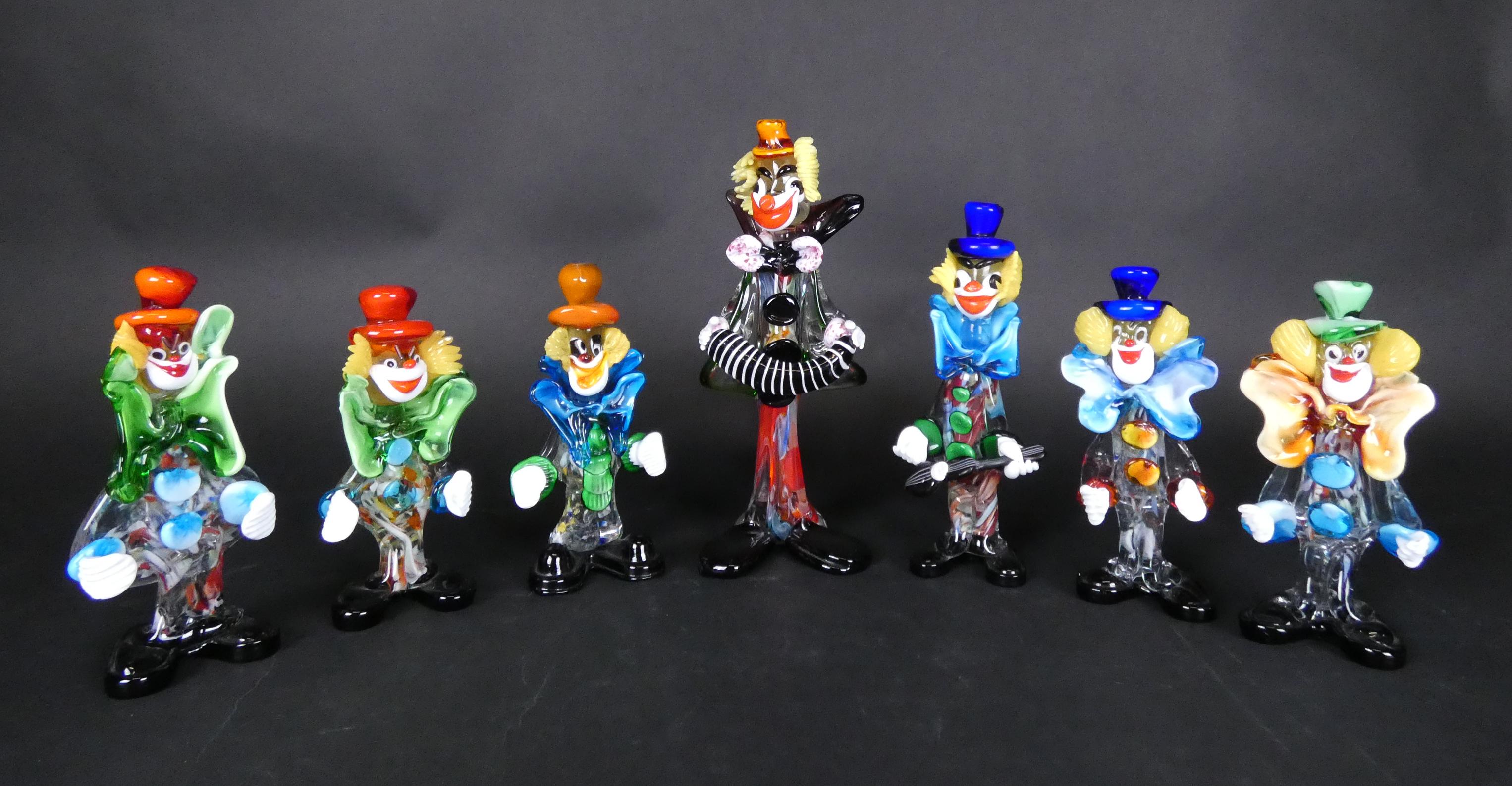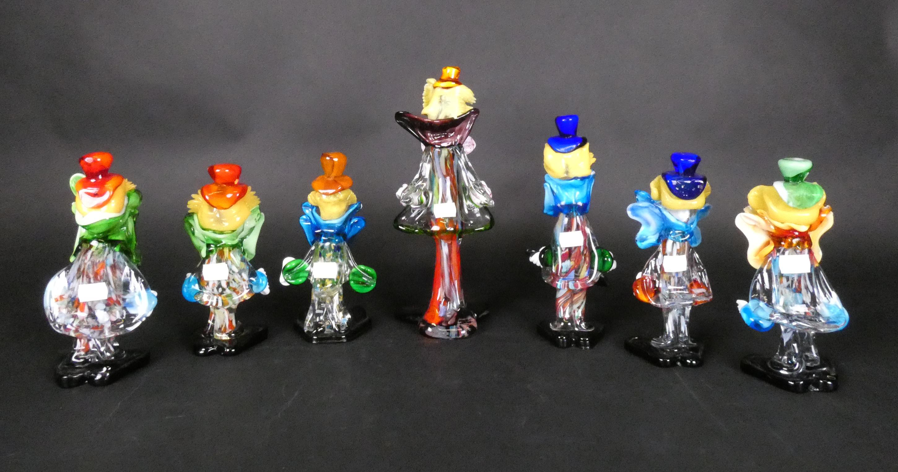 Verrerie: Clowns en verre multicouche MURANO (7pcs) H: de 21 à 32cm