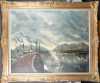 Tableau HST Marouflée -Paysage industriel- signé 100x80cm cadre de style doré (lacunes)