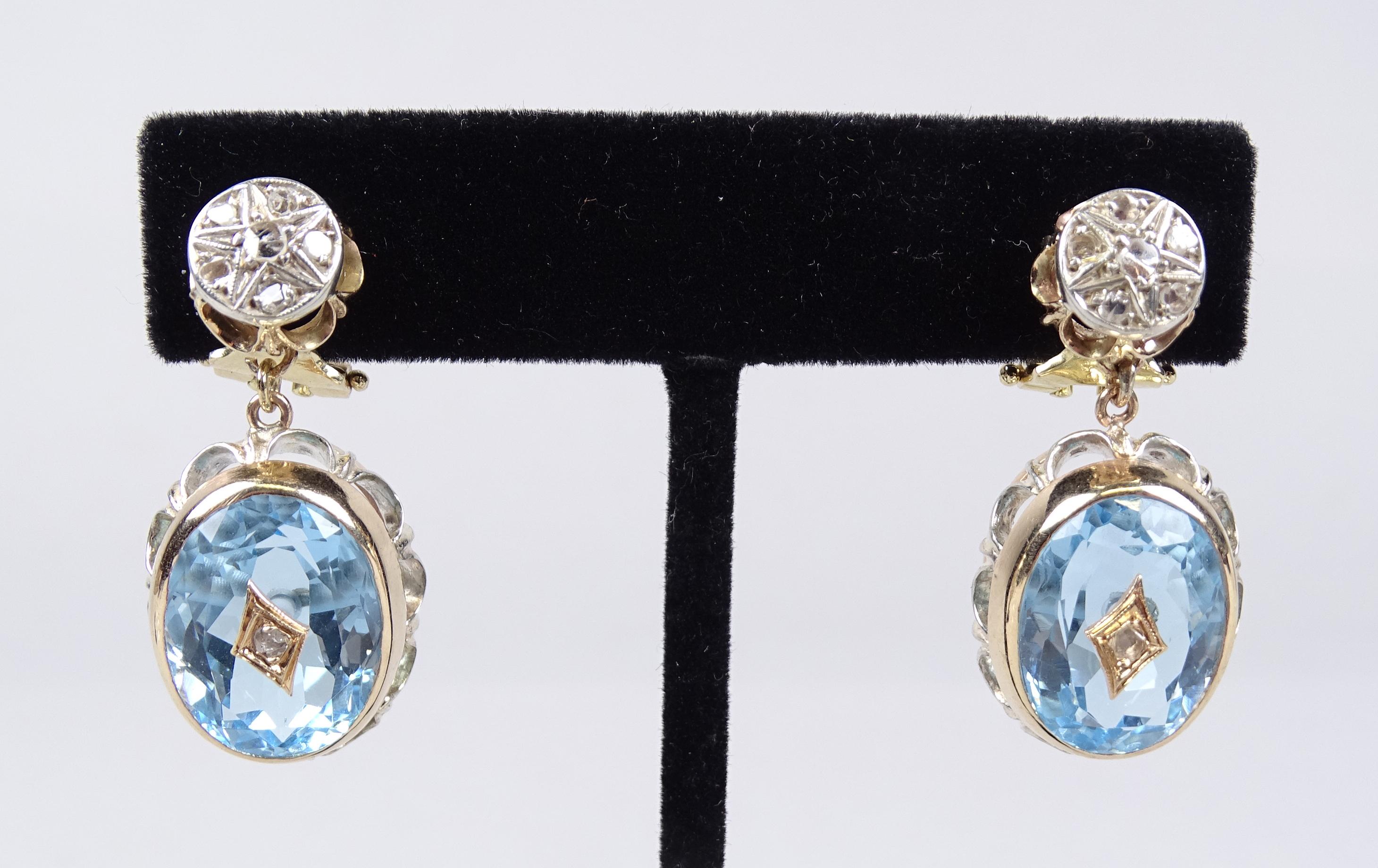 Bijou: Paire de clips d'oreilles en or jaune 9K et argent serties de topazes pour env. 24cts et de diamants pour env. 0,10cts P: 16,1gr