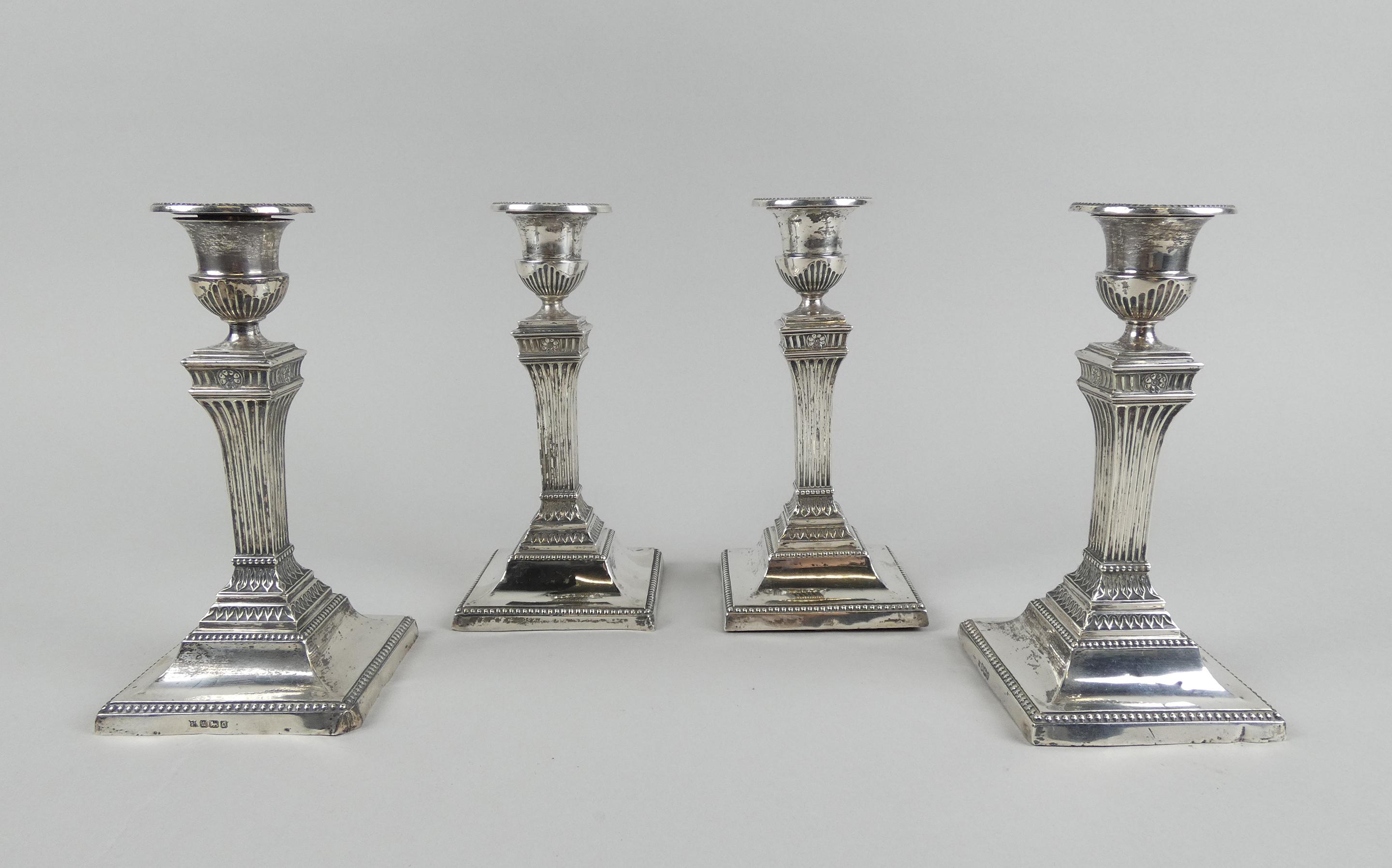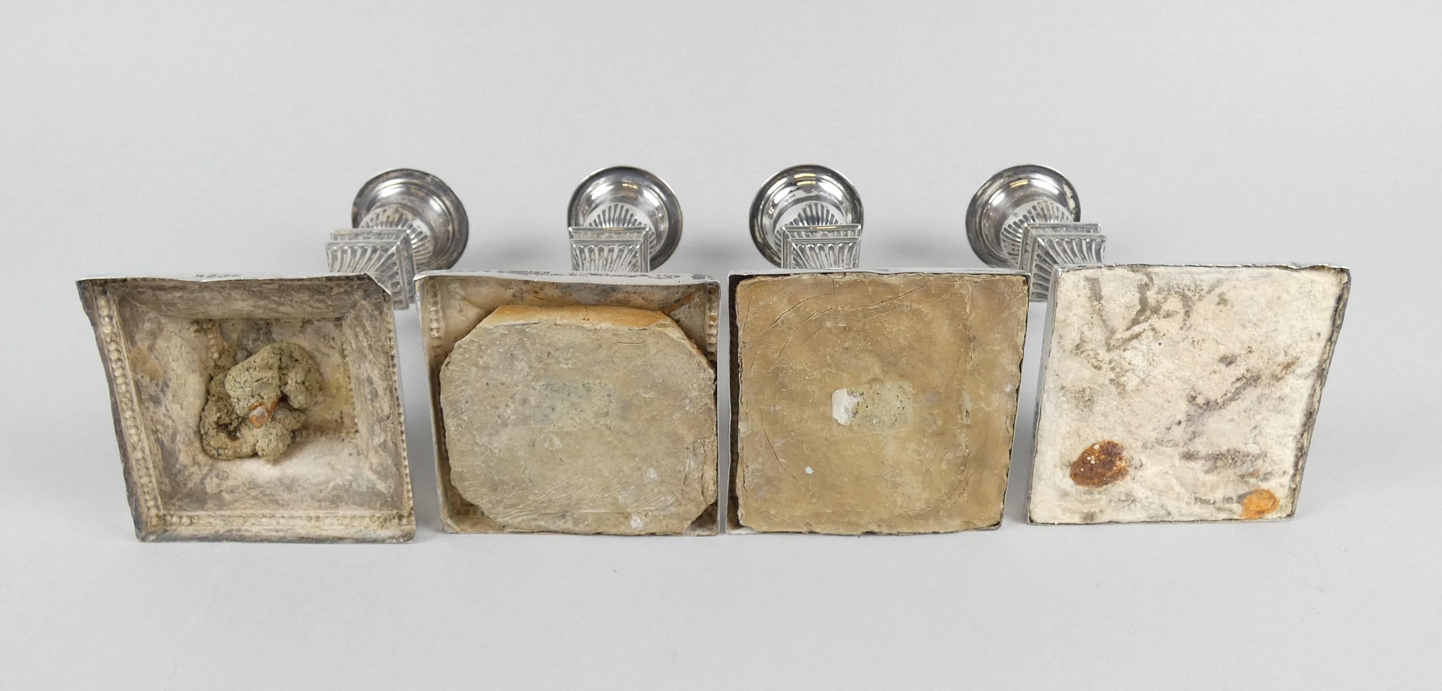 Argenterie : Suite de 4 bougeoirs en argent lesté (usure) poinçons anglais