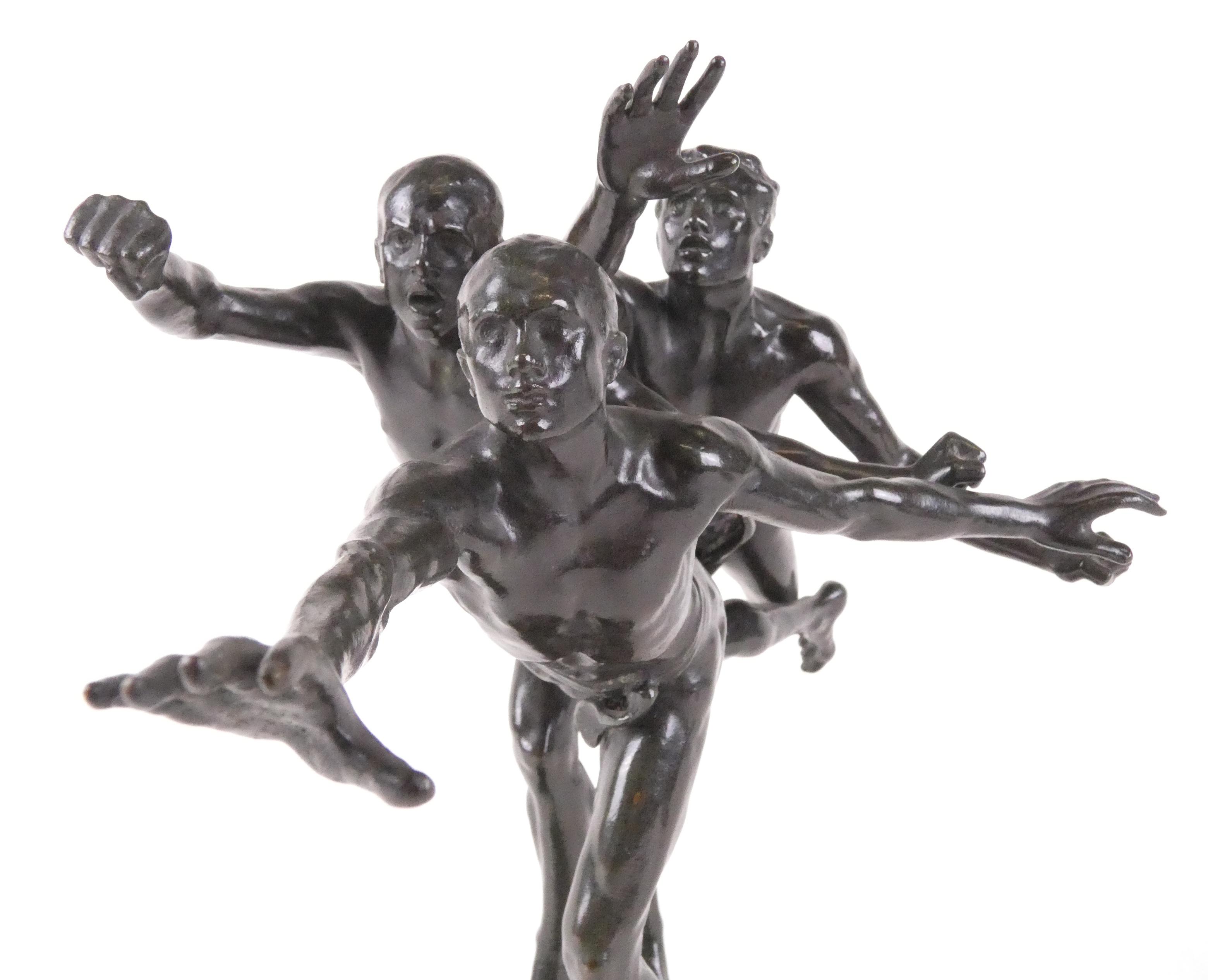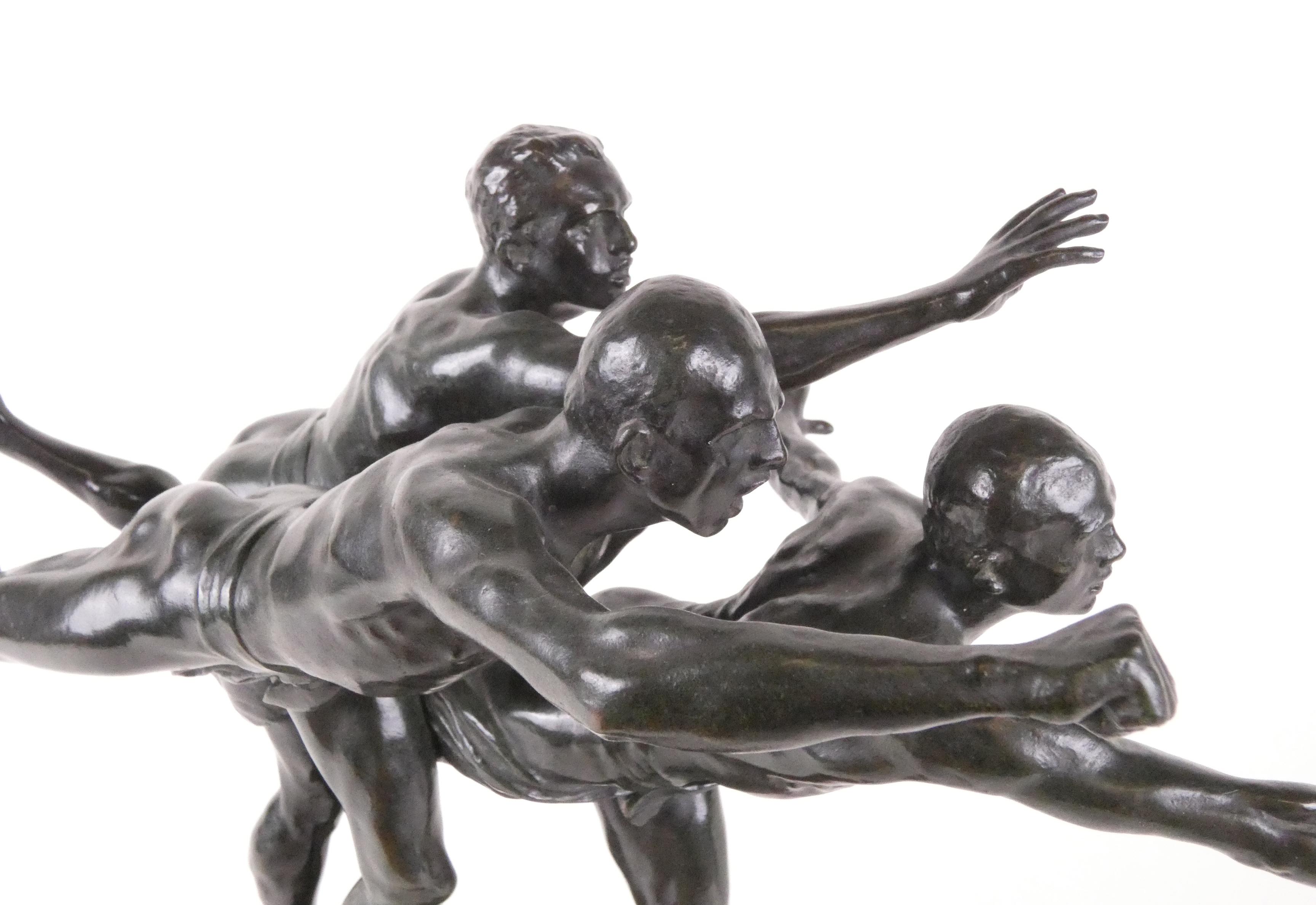 Sculpture : Bronze à patine verte - au But les Trois Coureurs - signé BOUCHER Alfred