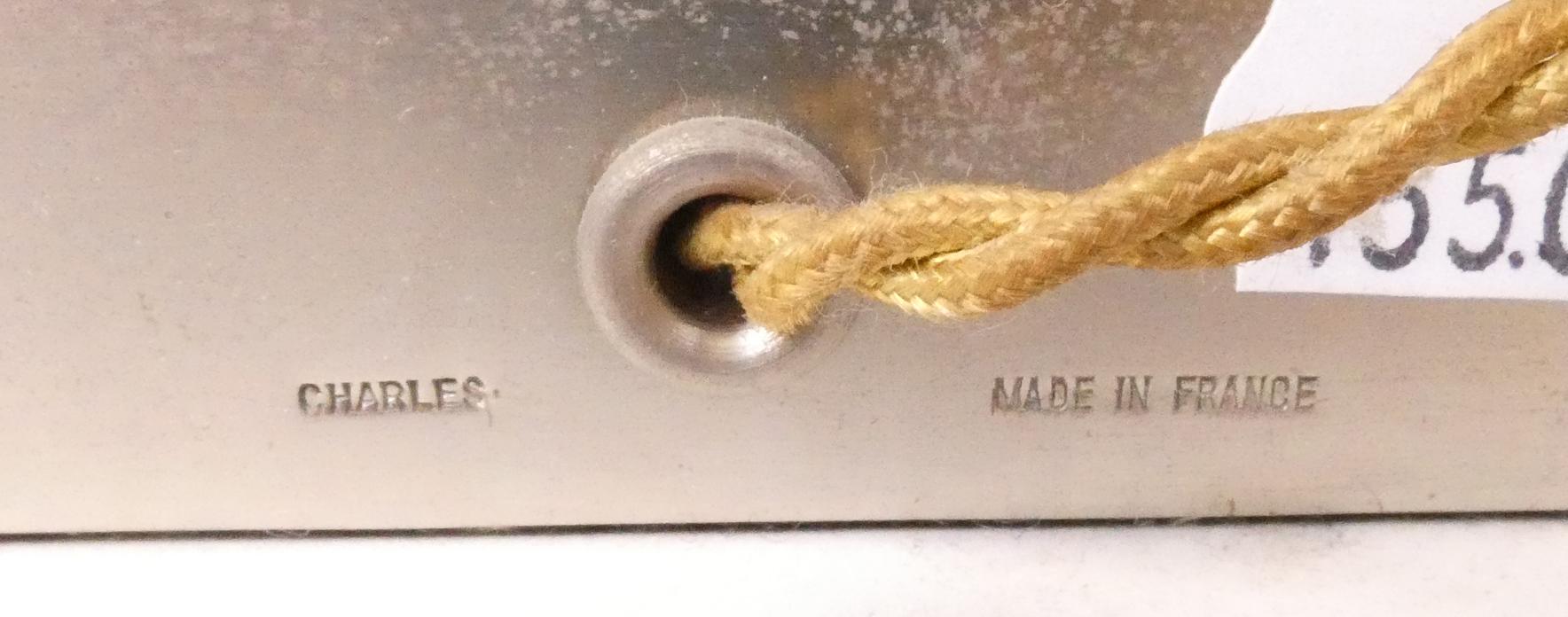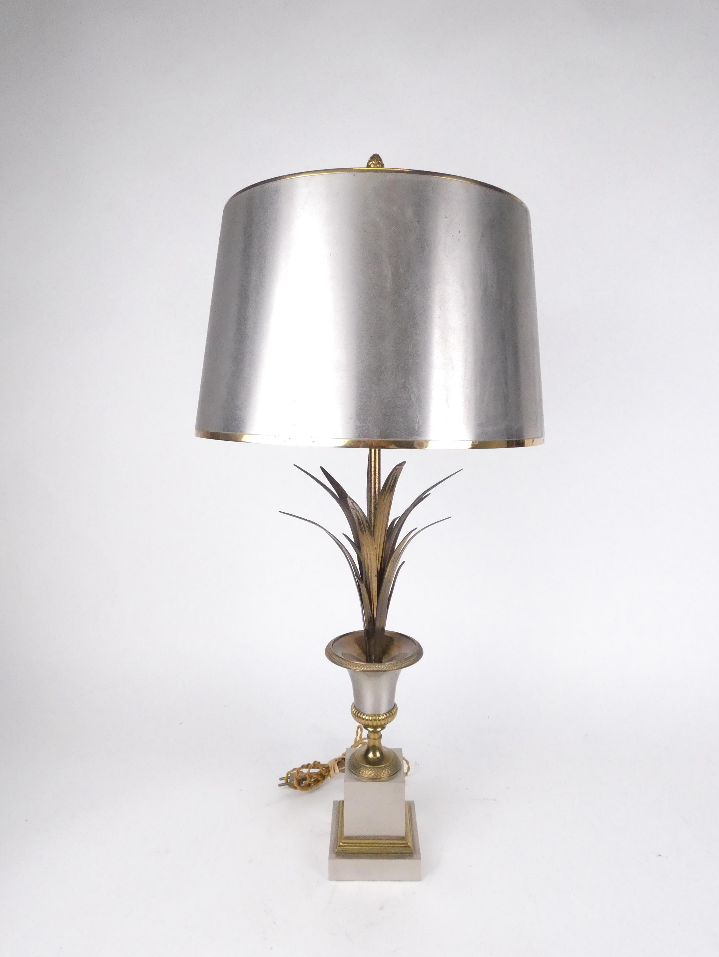 Luminaire : Lampe de Bureau gravé Maison Charles (pt taches) - Palmier - en métal argenté et doré 3 lumières