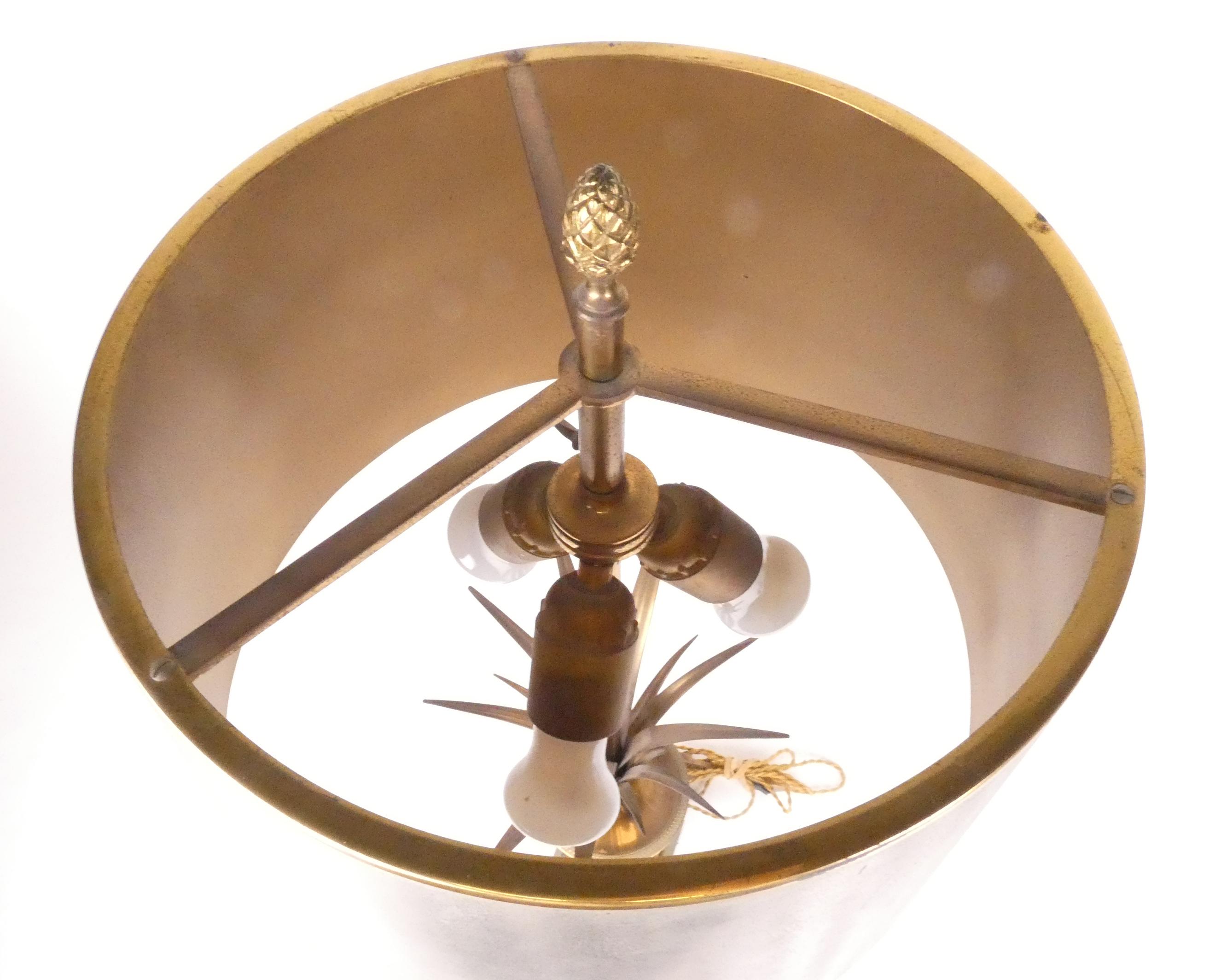 Luminaire: Lampe de Bureau gravé Maison Charles (pt taches) -Palmier- en métal argenté et doré 3 lumières H:78cm