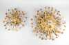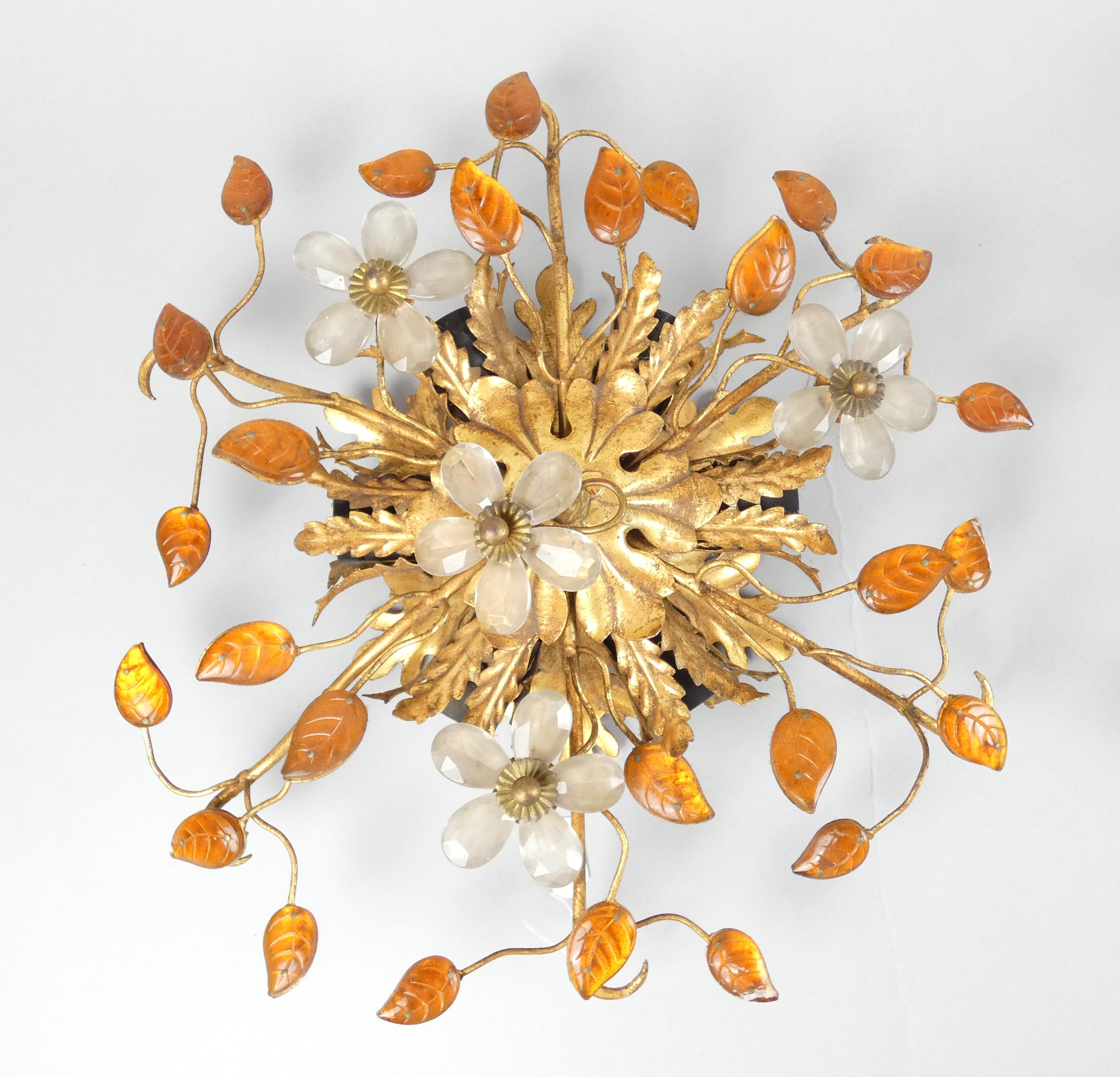 Luminaire : Plafonniers (2pcs) attribués à la maison Baguès en métal doré et verroteries - fleurs -